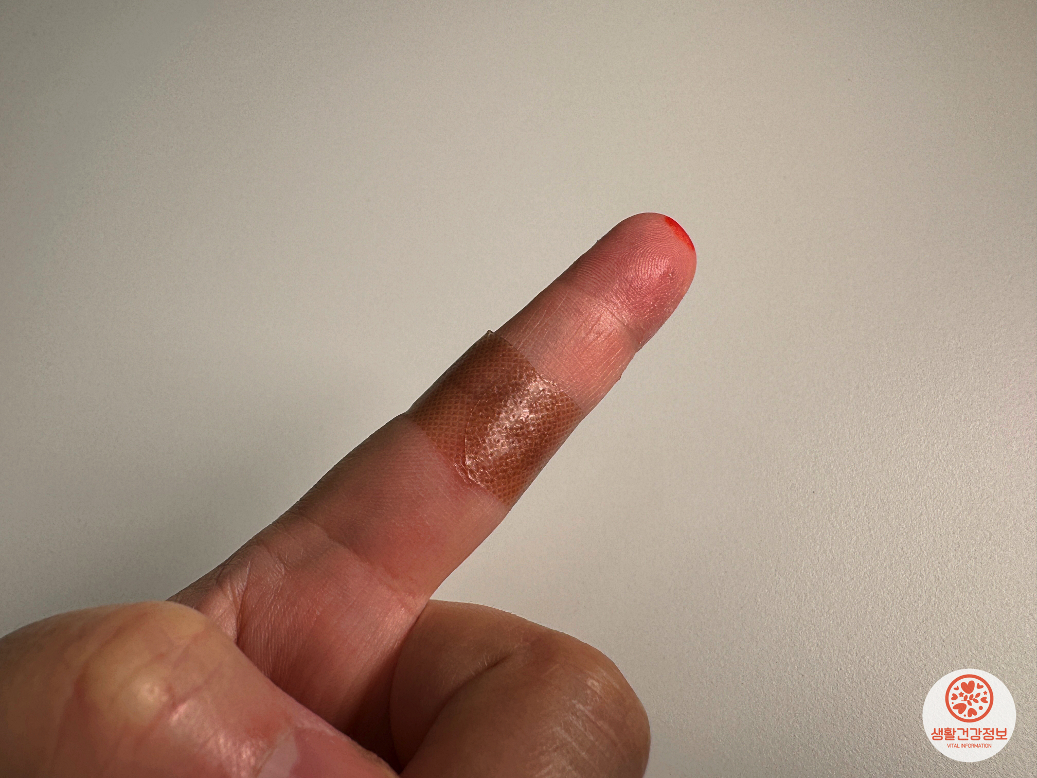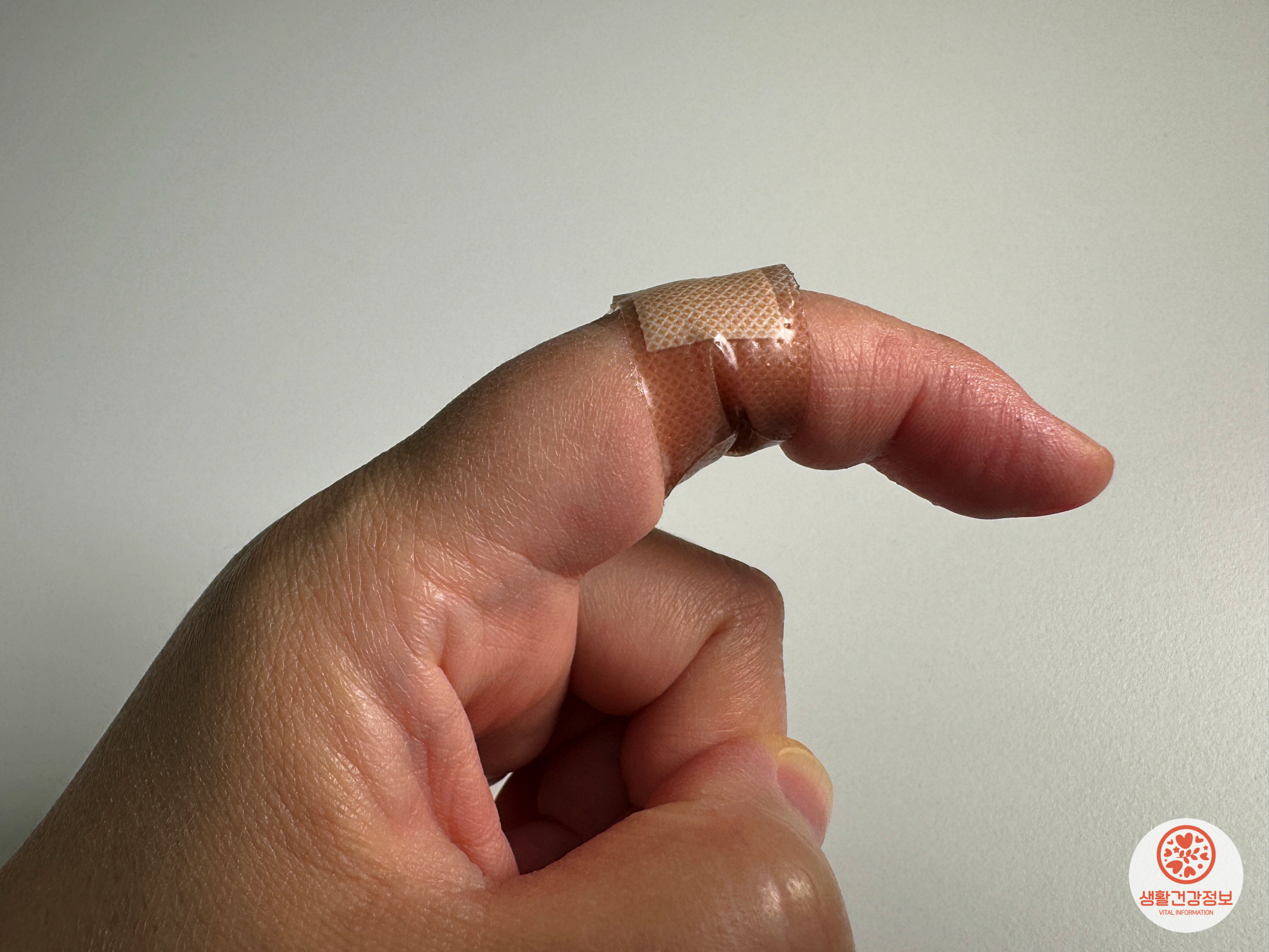 손가락에 난 상처에 밴드를 붙여볼게요.