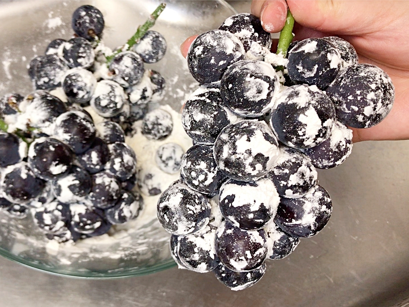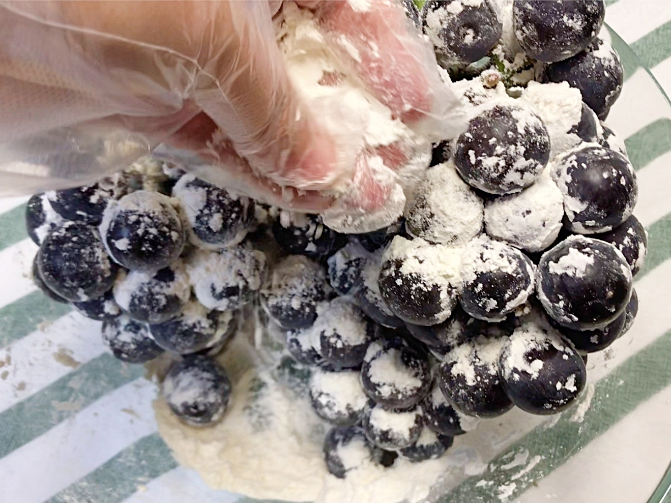 포도알 사이사이 골고루 밀가루를 뿌리고