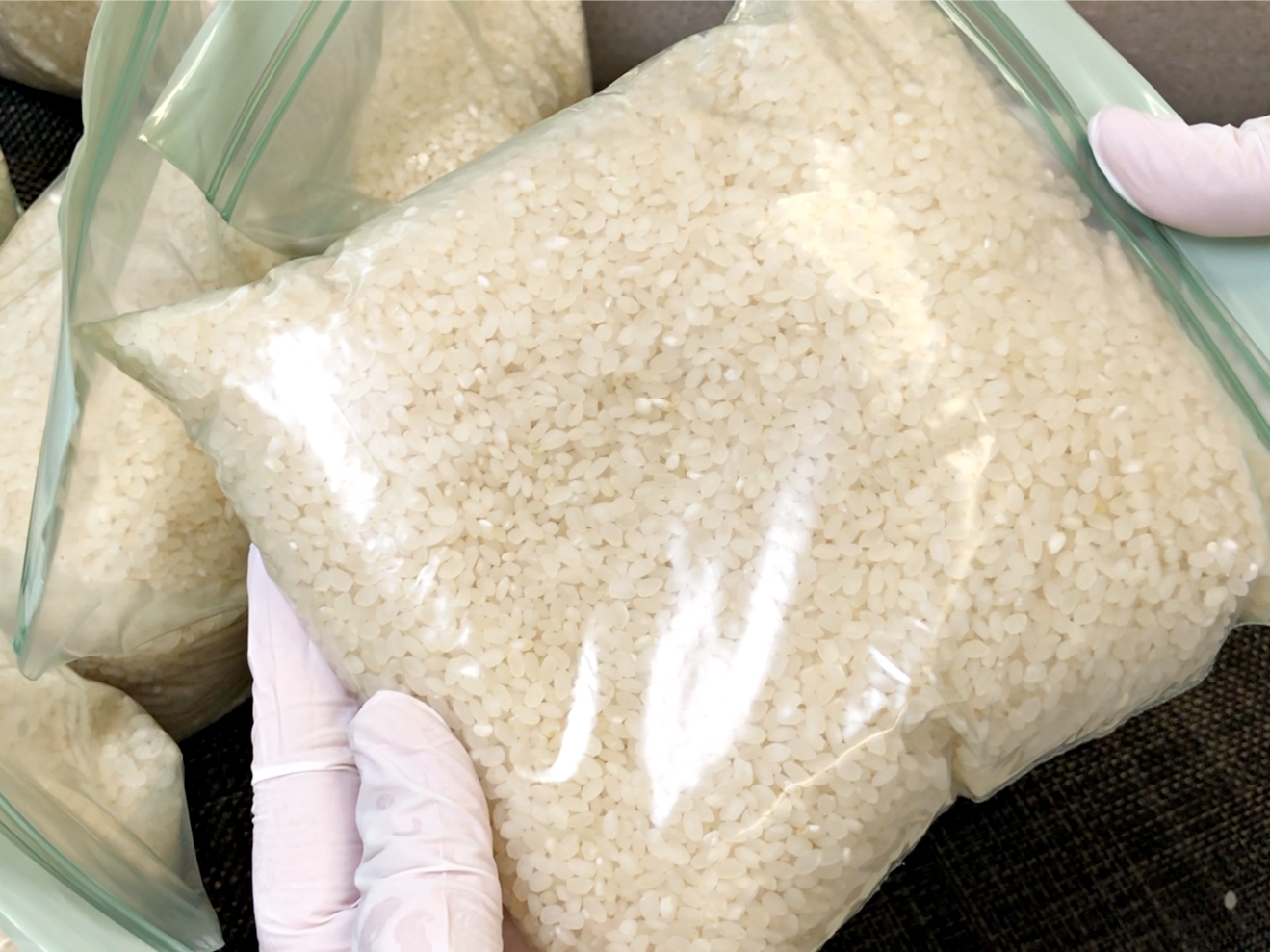 작은 사이즈 지퍼백에 쌀을 소분해서 담고요.