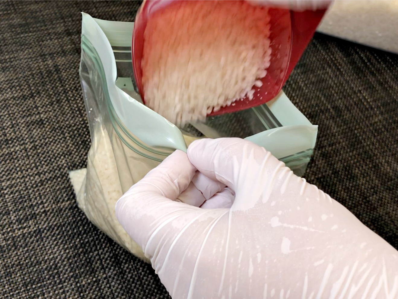 크기가 일정한 용기가 없을 땐 지퍼백을 쓰셔도 돼요.
