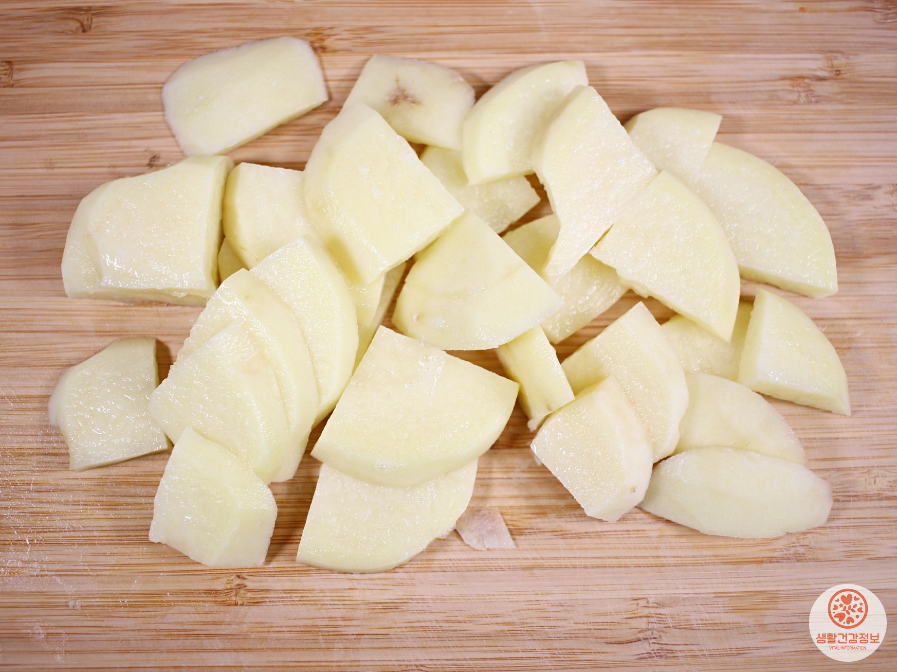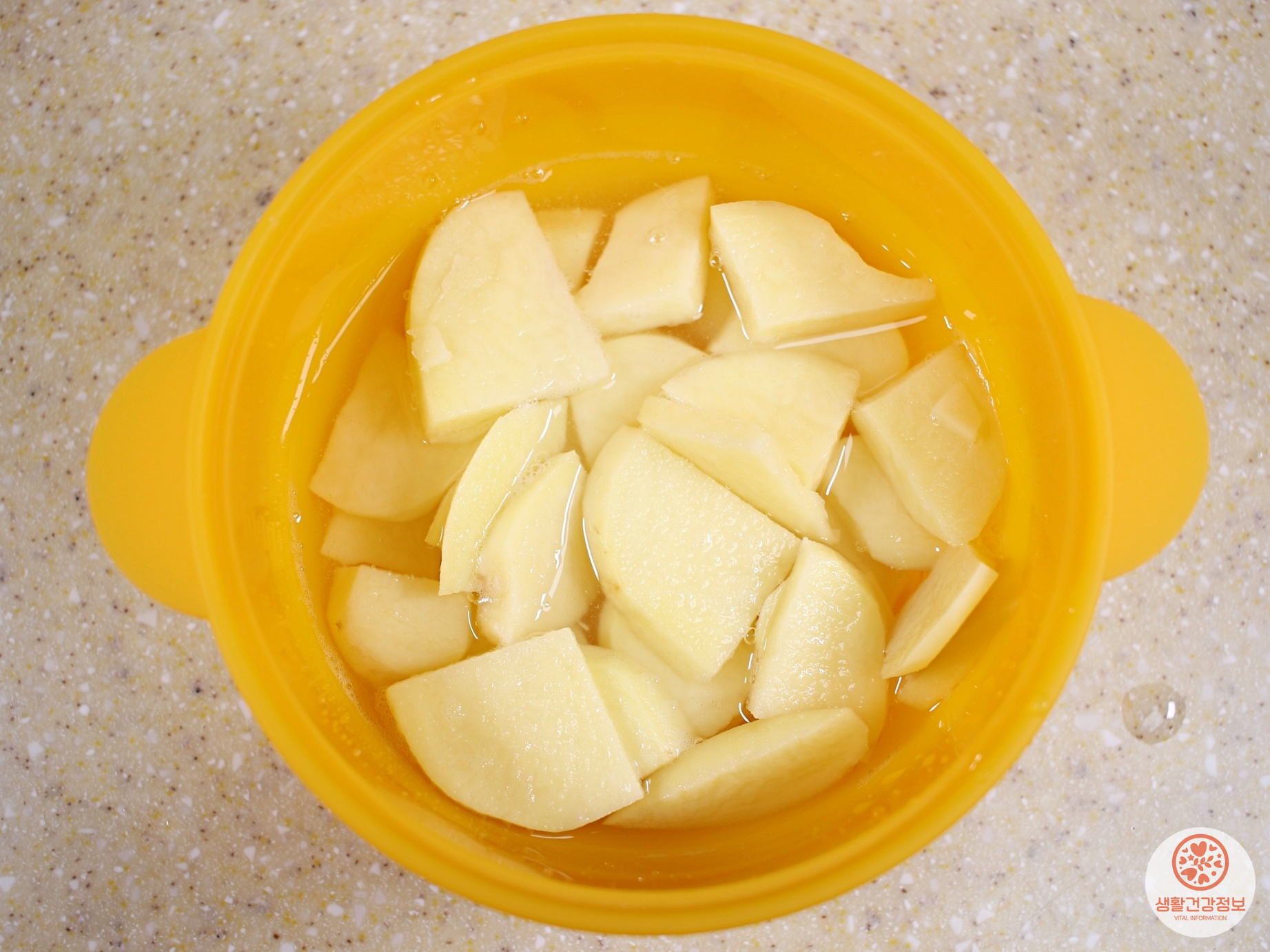 손질한 감자를 그릇에 담고