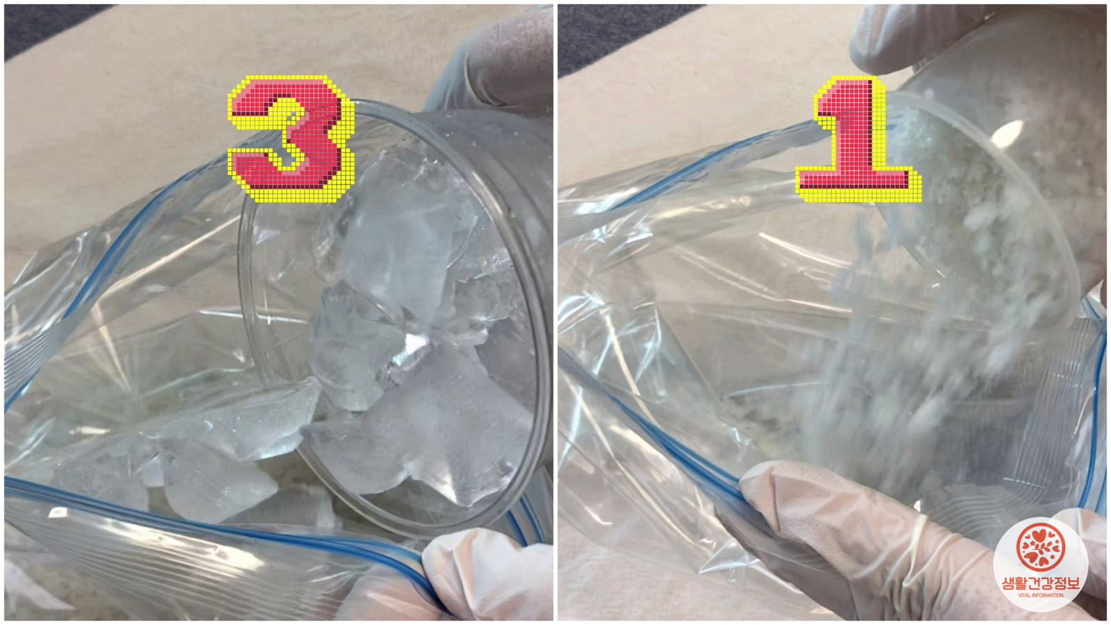 얼음과 소금을 넣은 지퍼백에