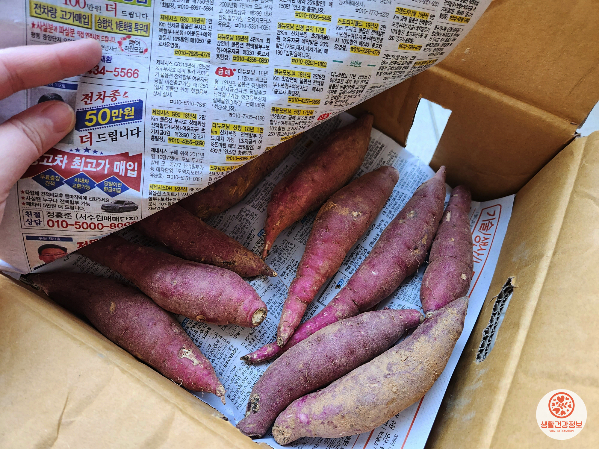 고구마를 박스에 넣거나 신문지로 포장하기 전에