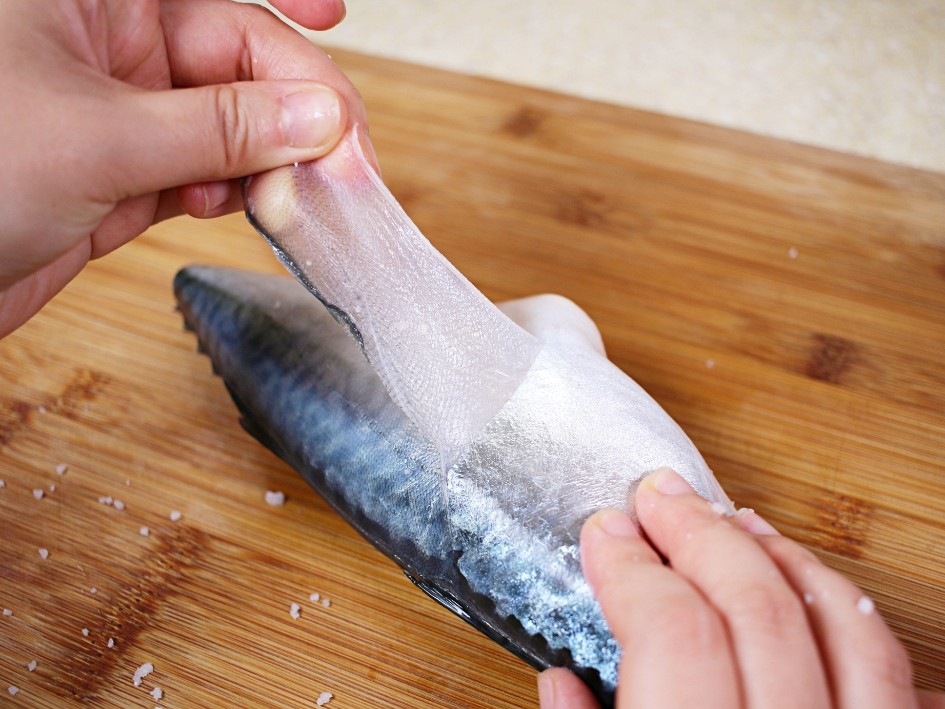 고등어를 감싸고 있는 이 얇은 껍질과 껍질 아래의 지방층은