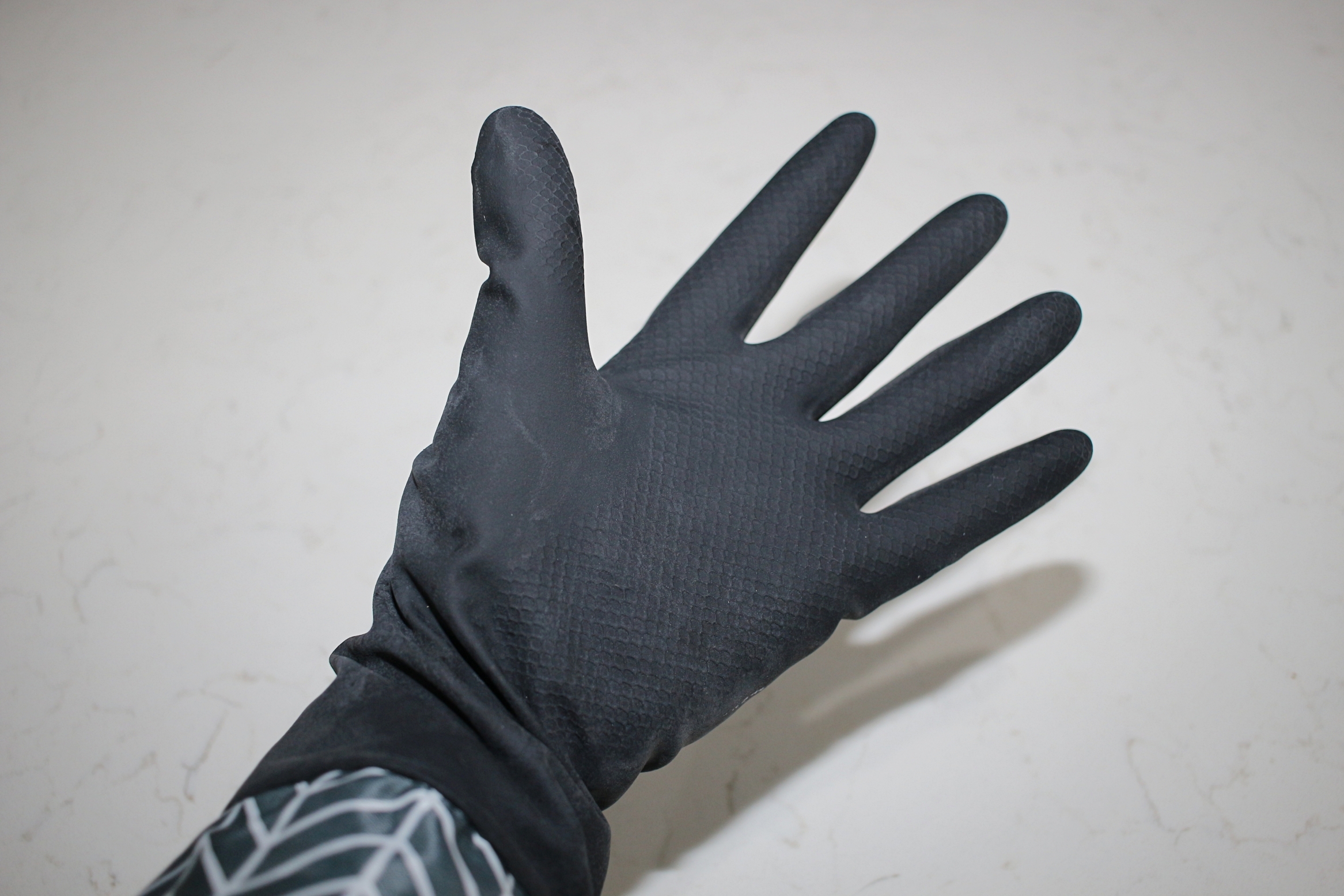 고무장갑을 낀 손에 배면