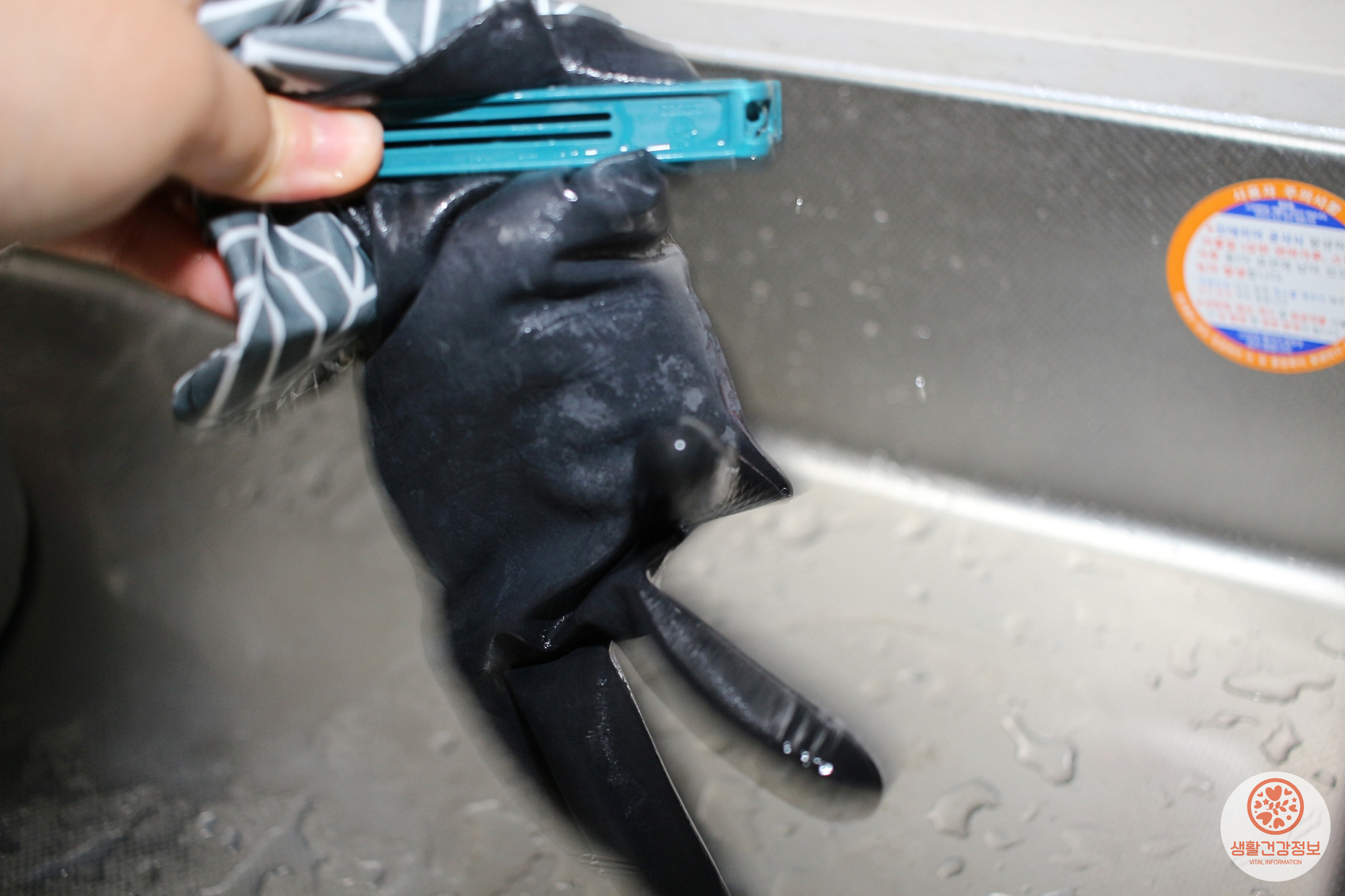 고무장갑을 물로 헹구고
