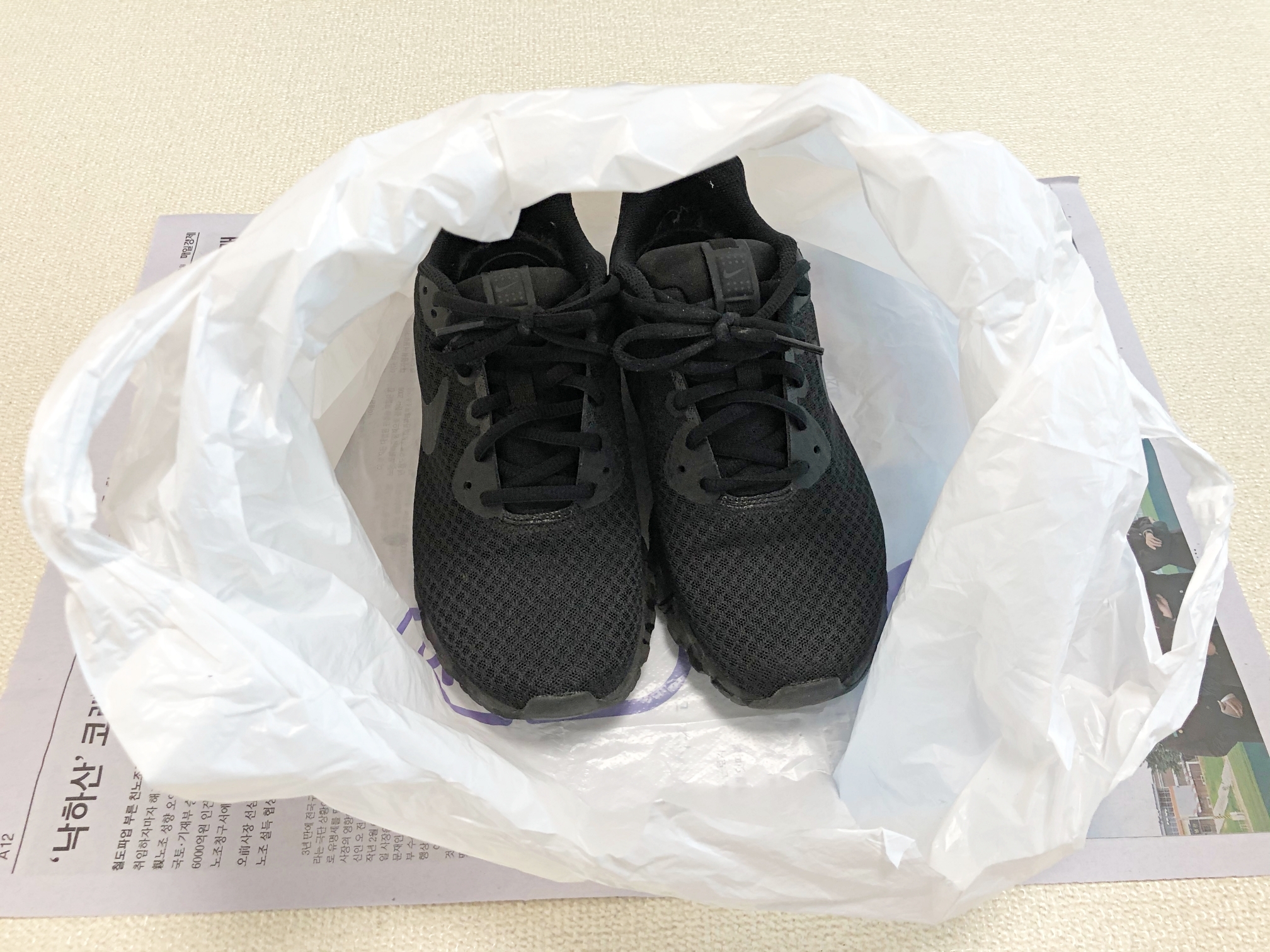 신문지를 깔고 그 위에 신발을 보관하거나