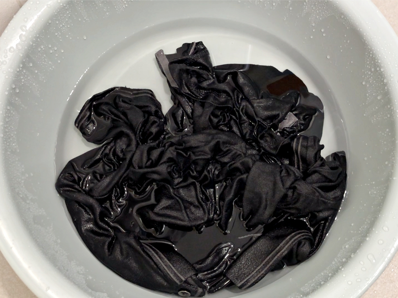 색바랜 검정옷을 대야에 담아주세요.