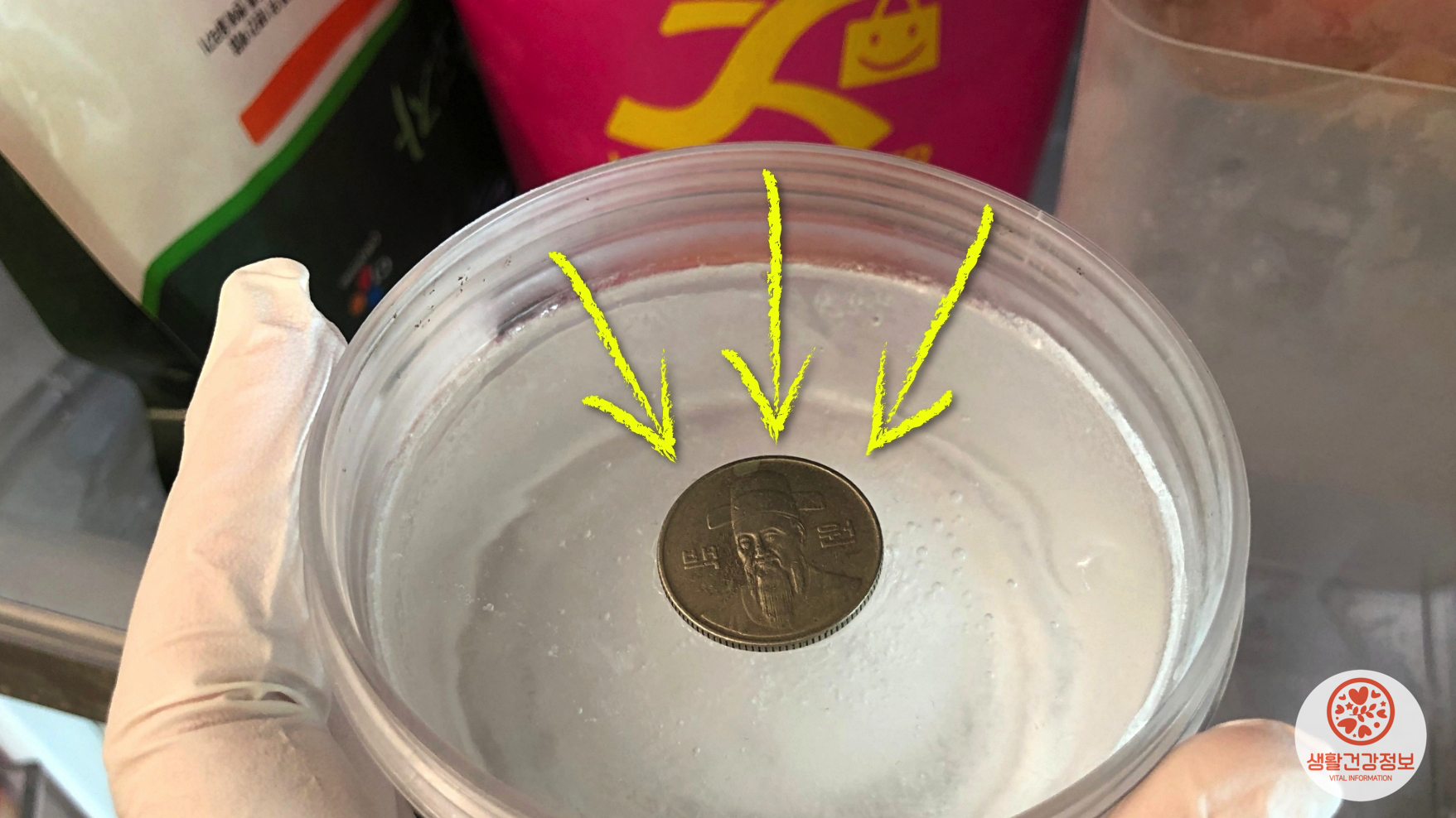 냉동실 속 동전을 꺼내봤는데요.