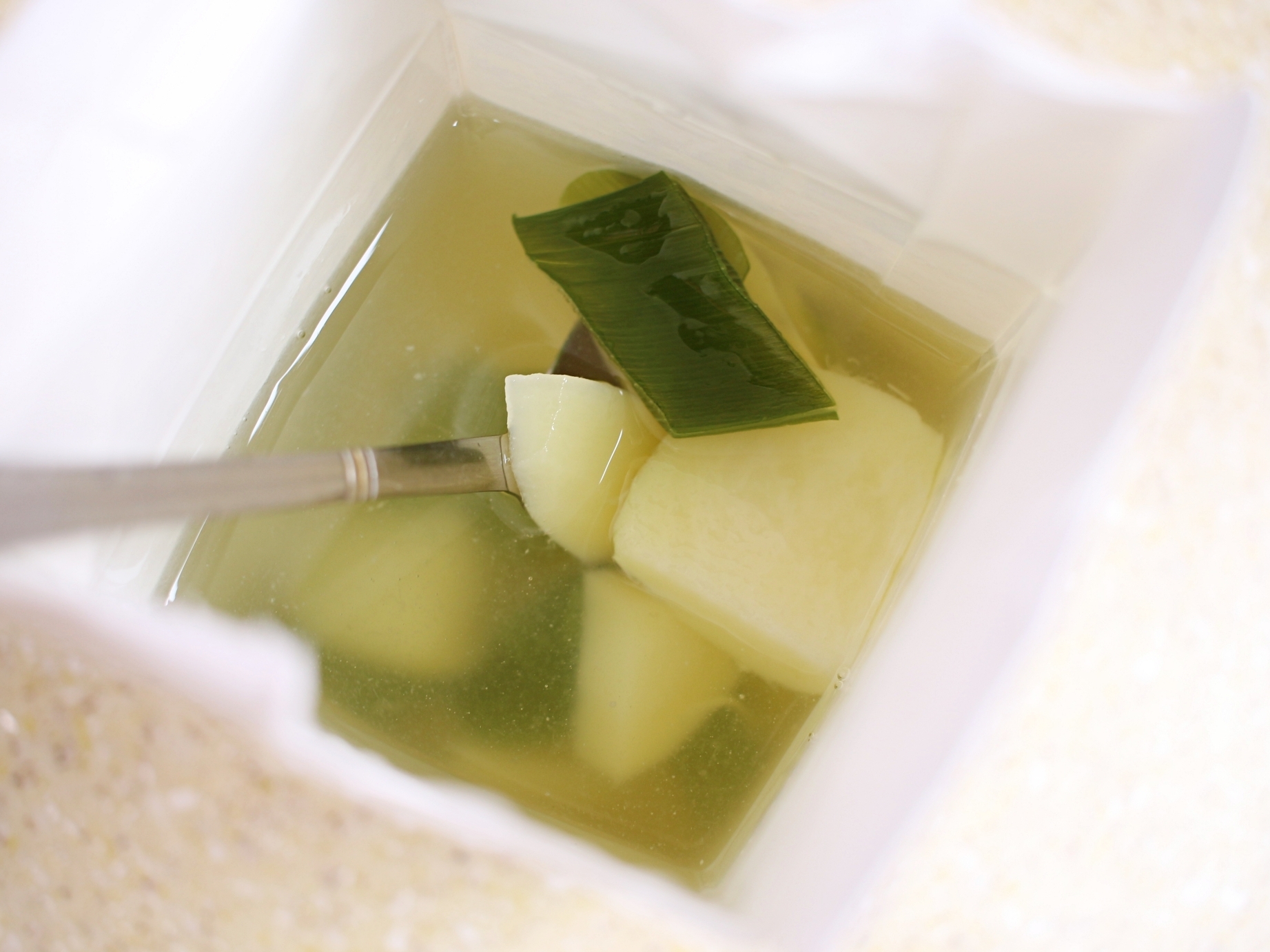 깨끗한 빈 우유갑에 국을 담아주세요.
