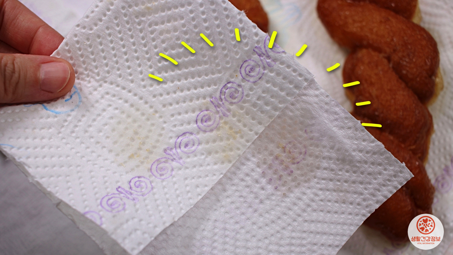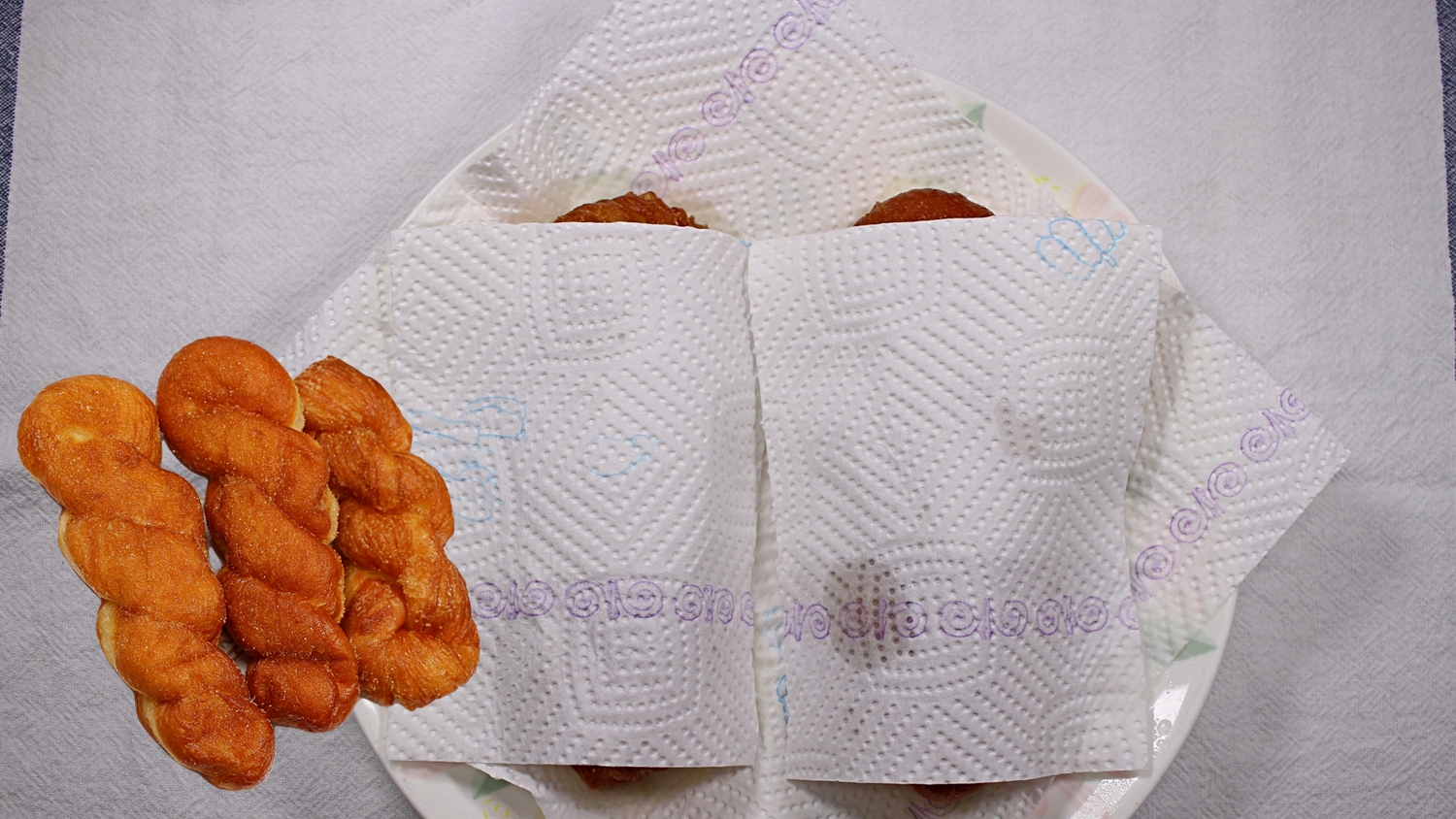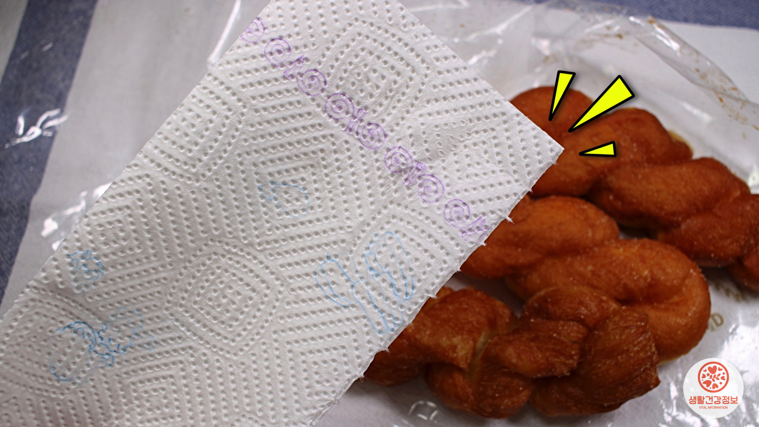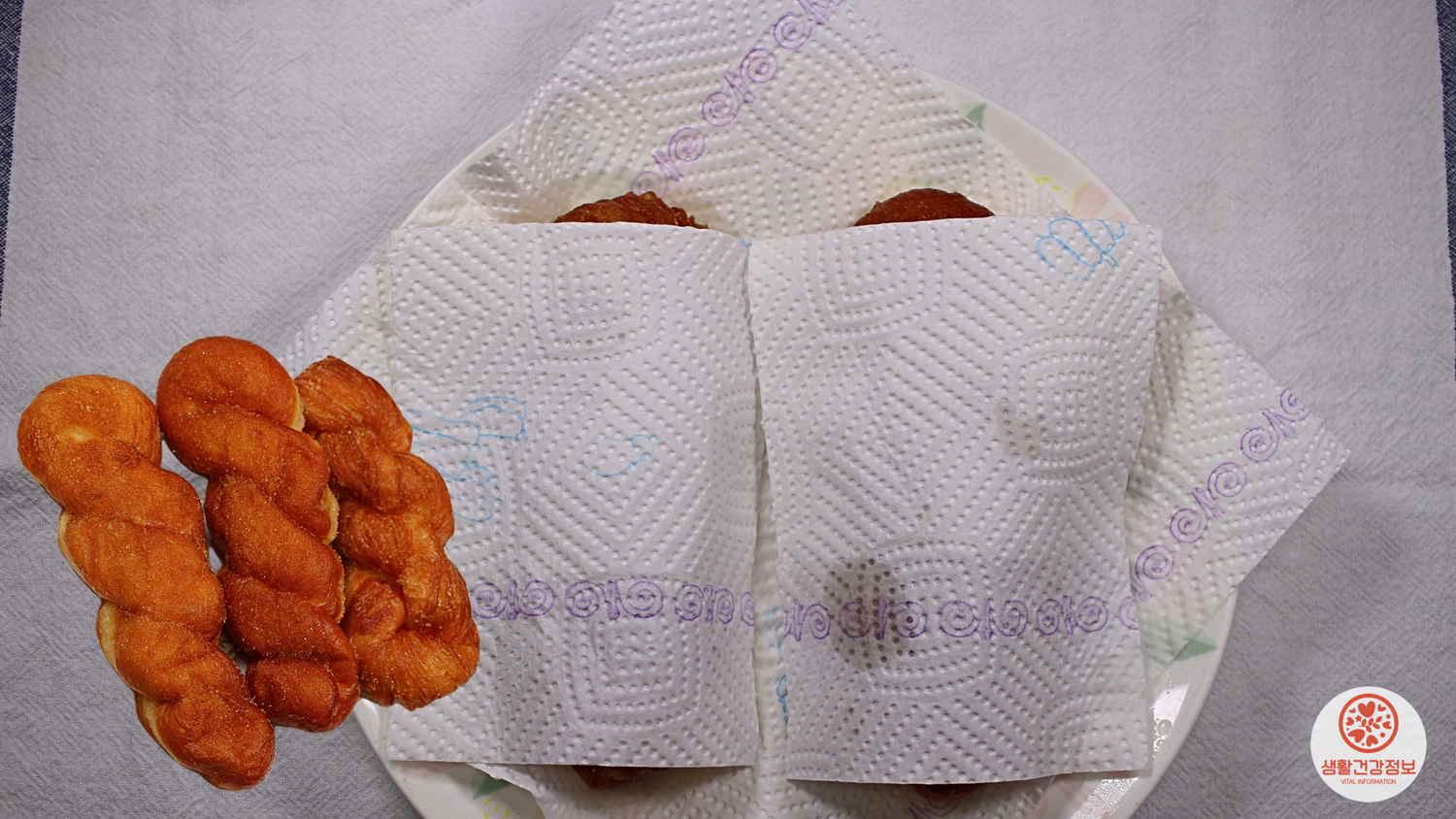 키친타월 위에 꽈배기를 올려주시고요.