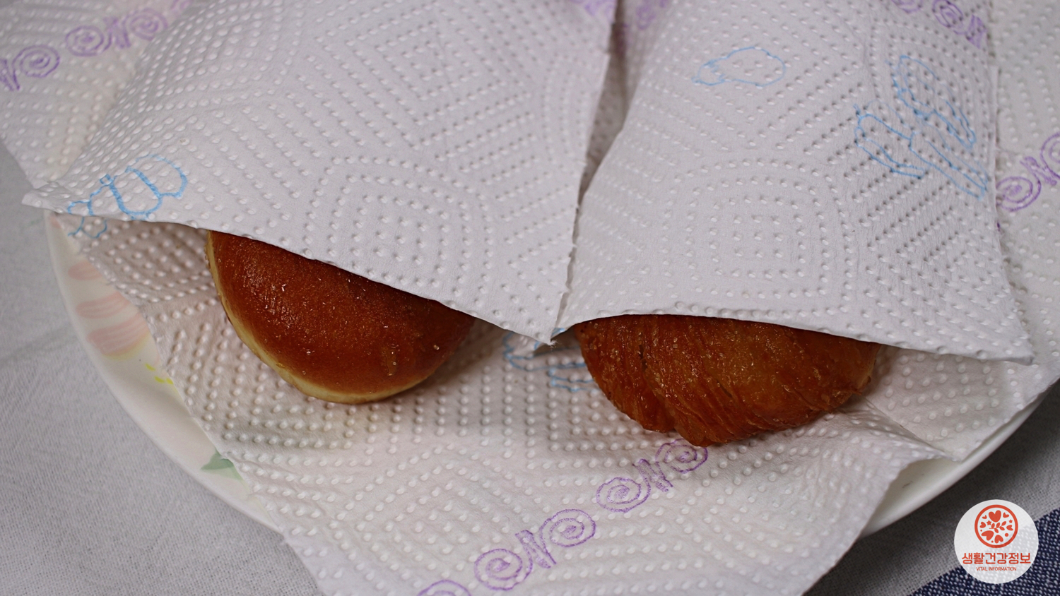 다른 키친타월로 꽈배기를 덮어서