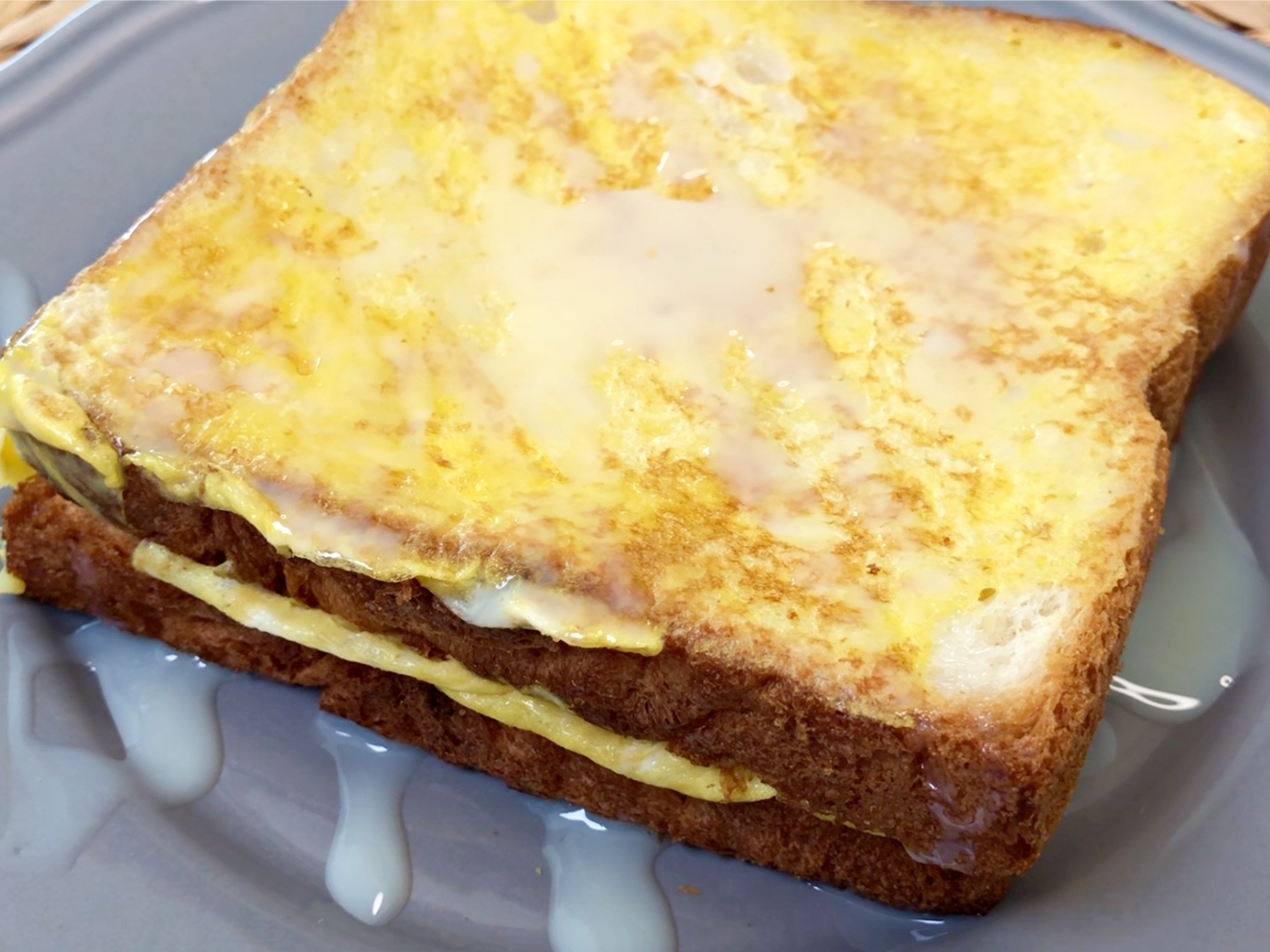 달걀물이 식빵에 착 붙어서 쉽게 떨어지지 않을거예요.
