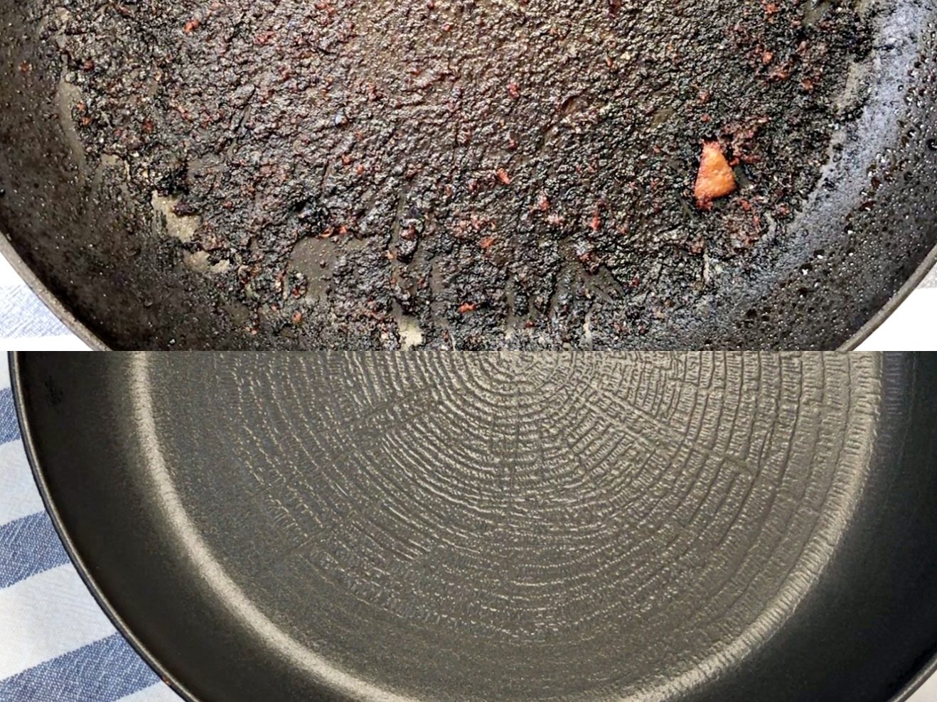 후라이팬이 새것처럼 완전 깨끗해졌죠!