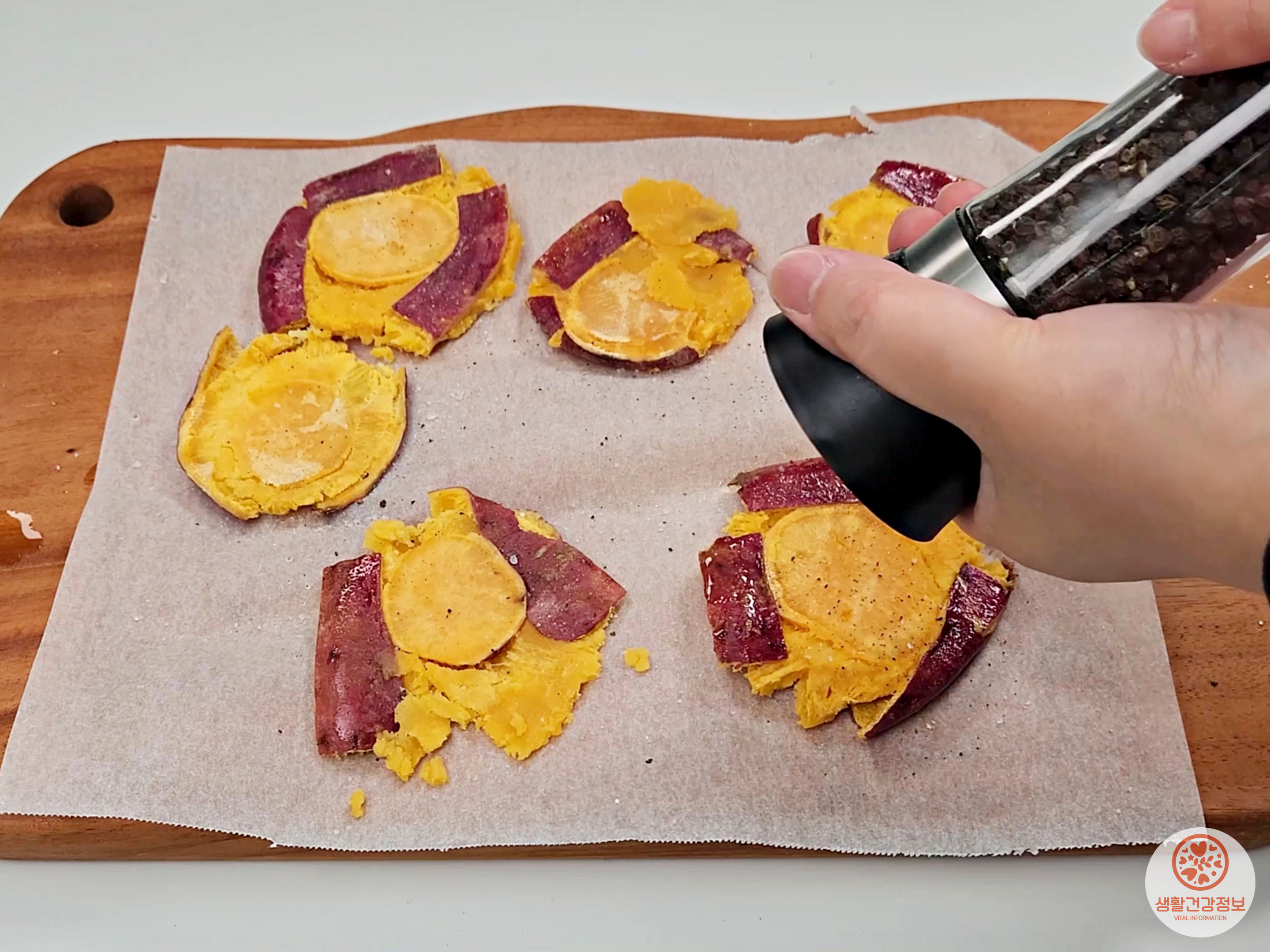 재료는 고구마, 소금, 후추 끝이에요.
