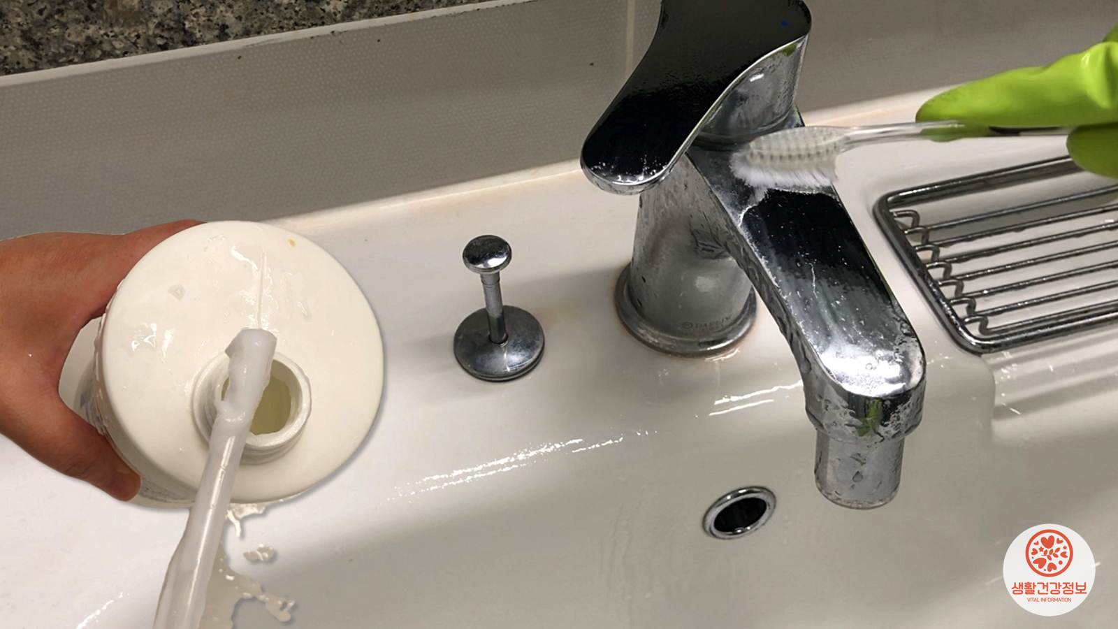 린스세제를 뿌리고 칫솔로 닦으면