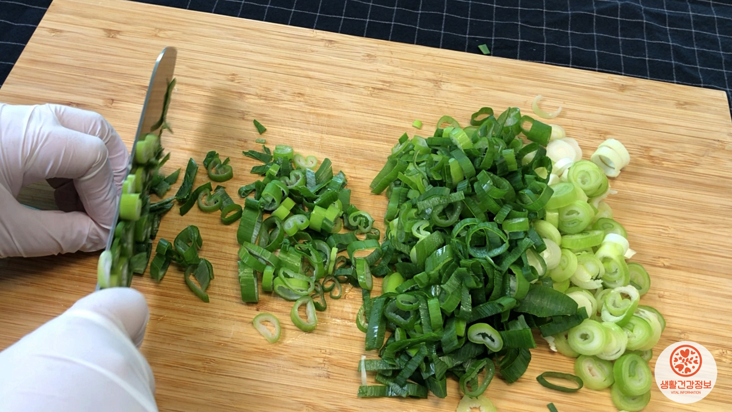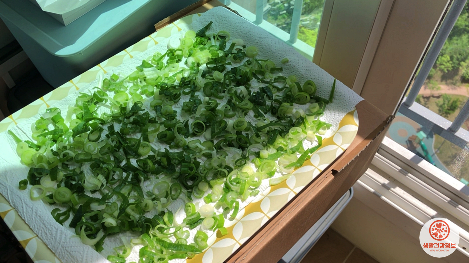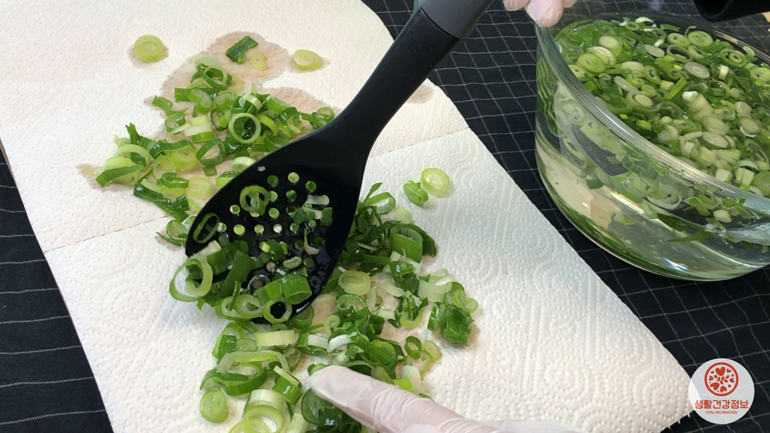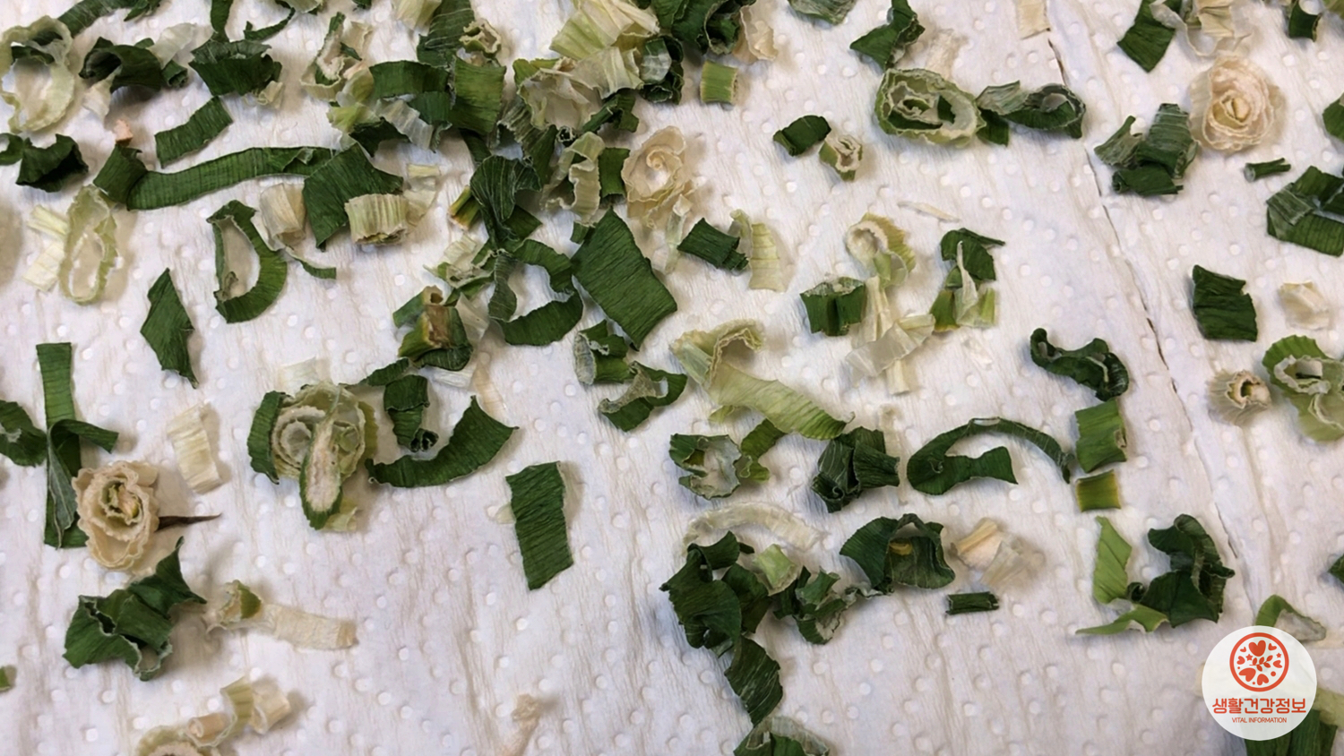 다시 뽀송뽀송한 키친타월 위에 대파를 올려주세요.