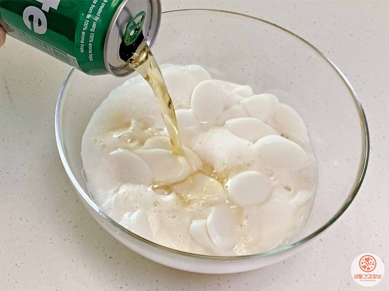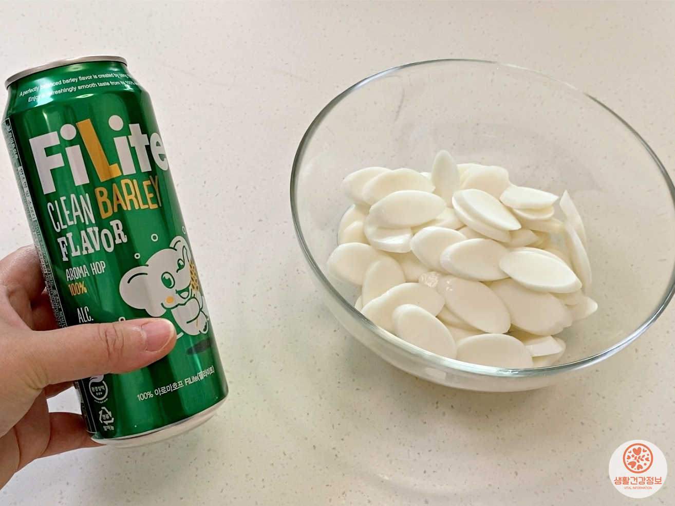떡국떡을 맥주에 담가보세요.