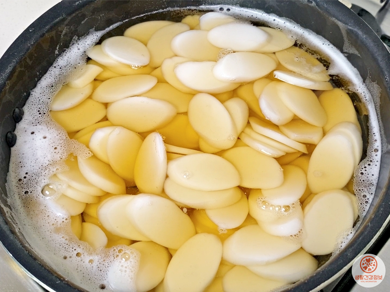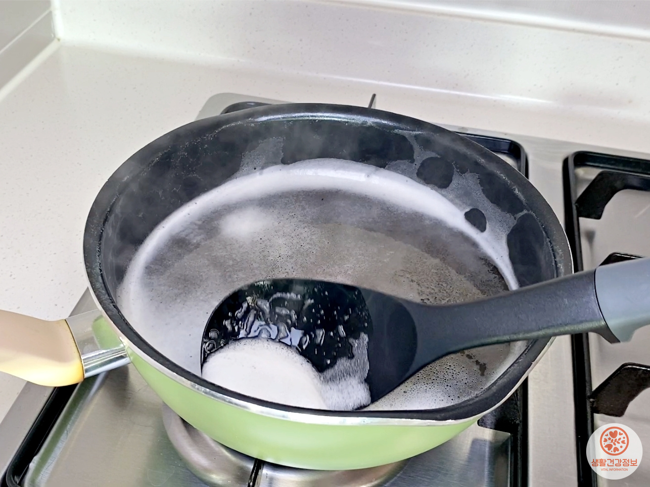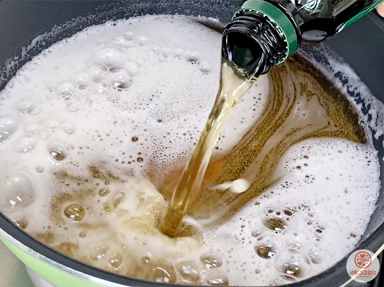 거품이 넘치기 전에 불을 끄고 거품만 살짝 걷어내 주세요.
