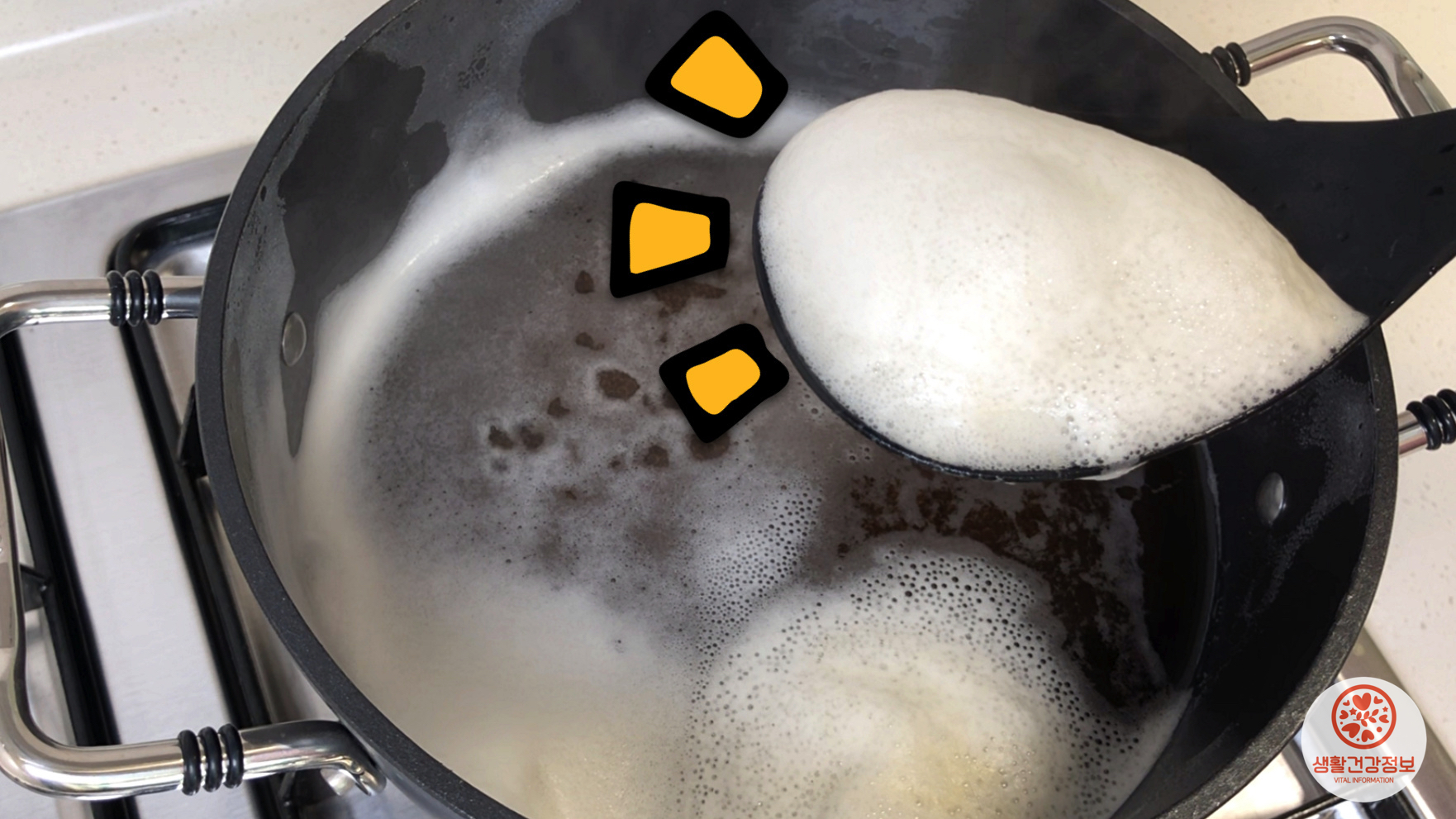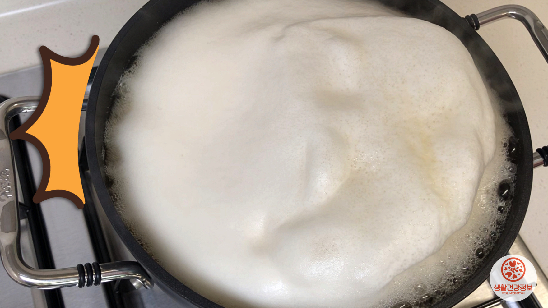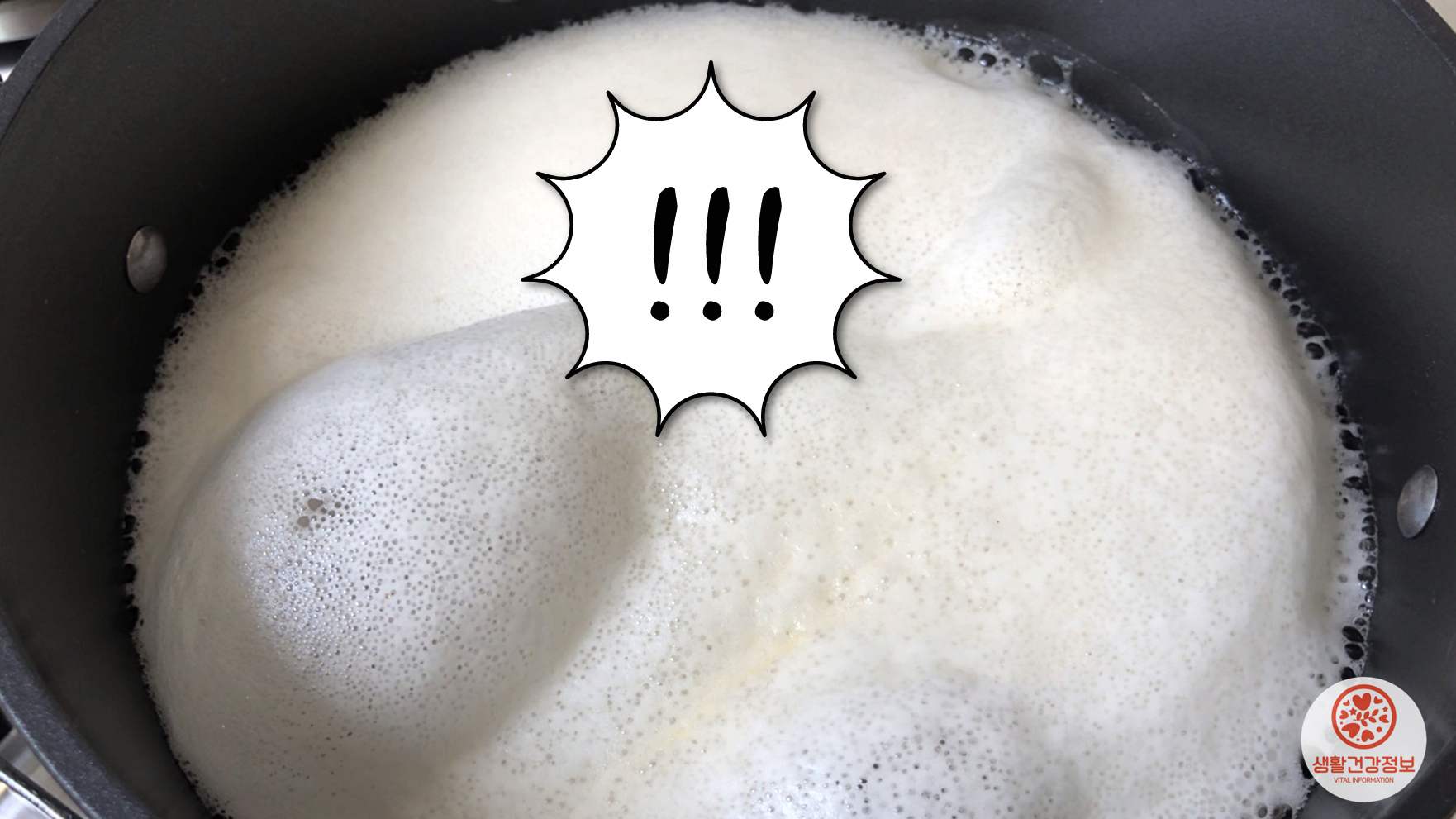거품이 확 끓어 넘치기 전에 가스불을 끄고