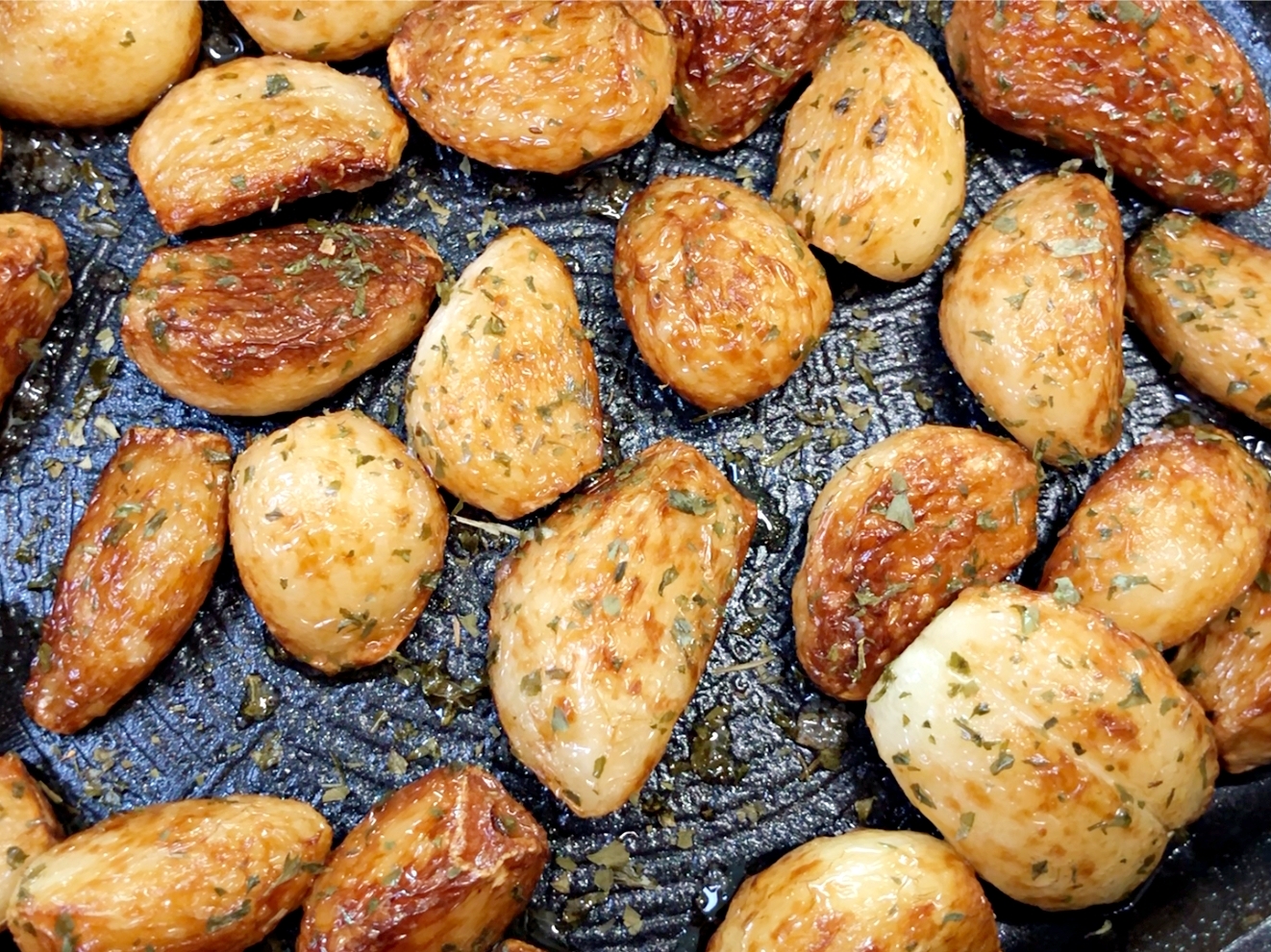 마늘을 골고루 굴려서 전체적으로 노릇하게 구워주세요.