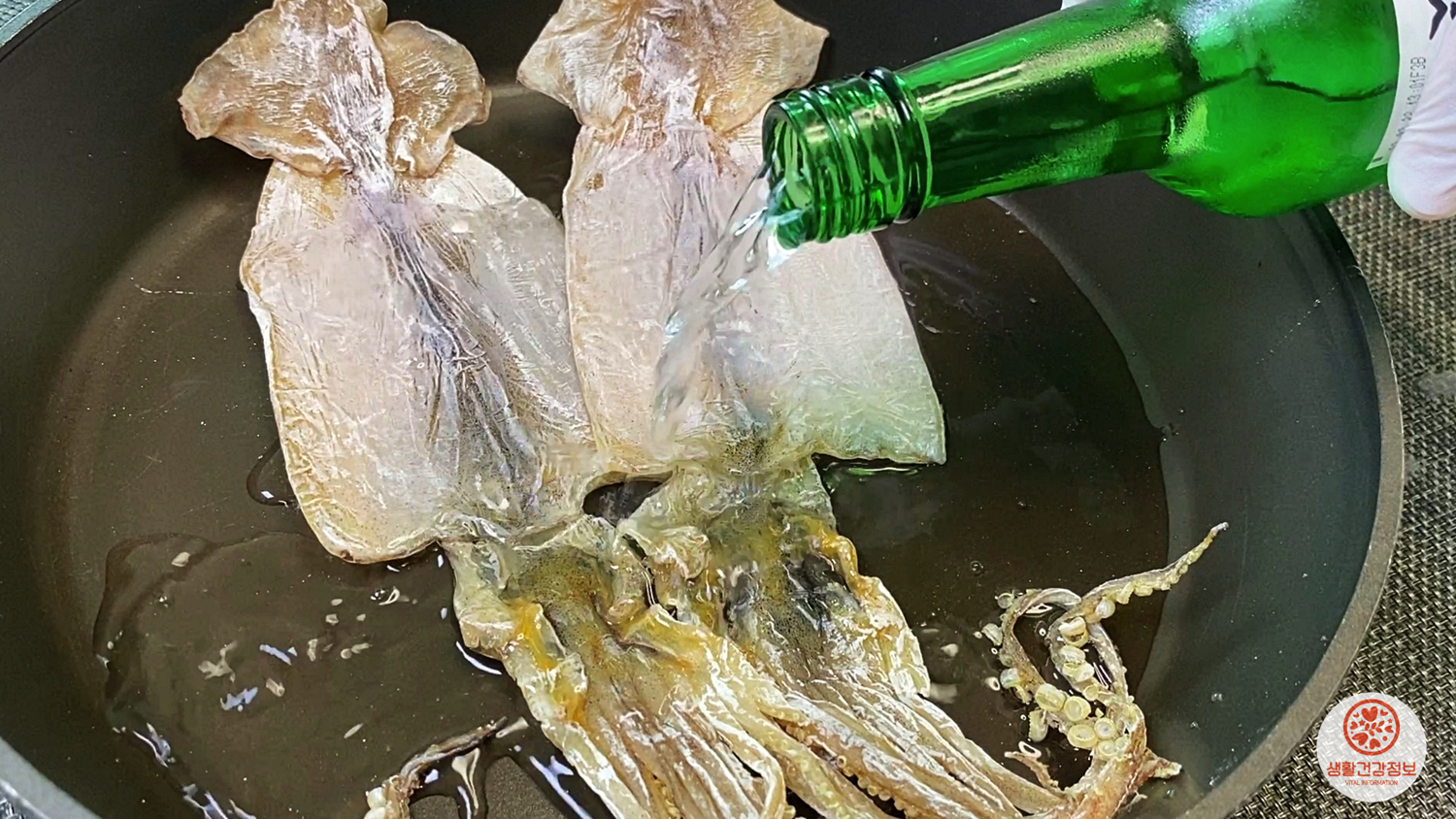 소주를 탄 찬물에 마른오징어를 넣고