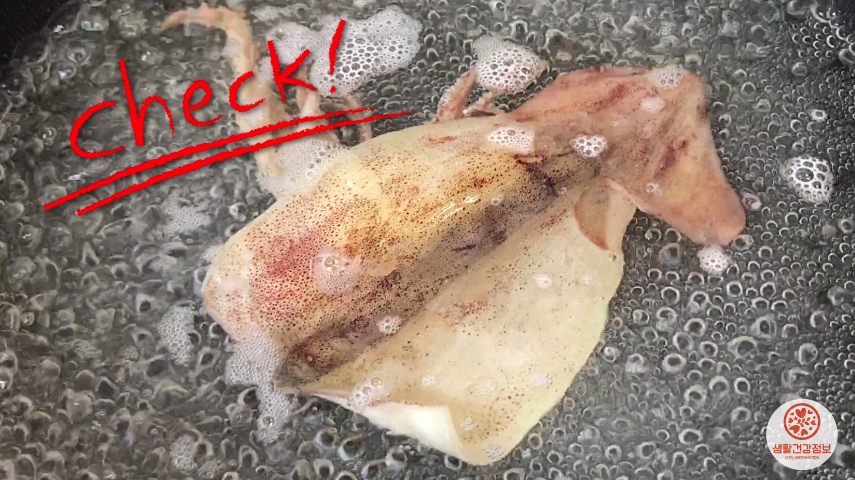 오징어가 살짝 오그라들면서 통통하게 변신해요!