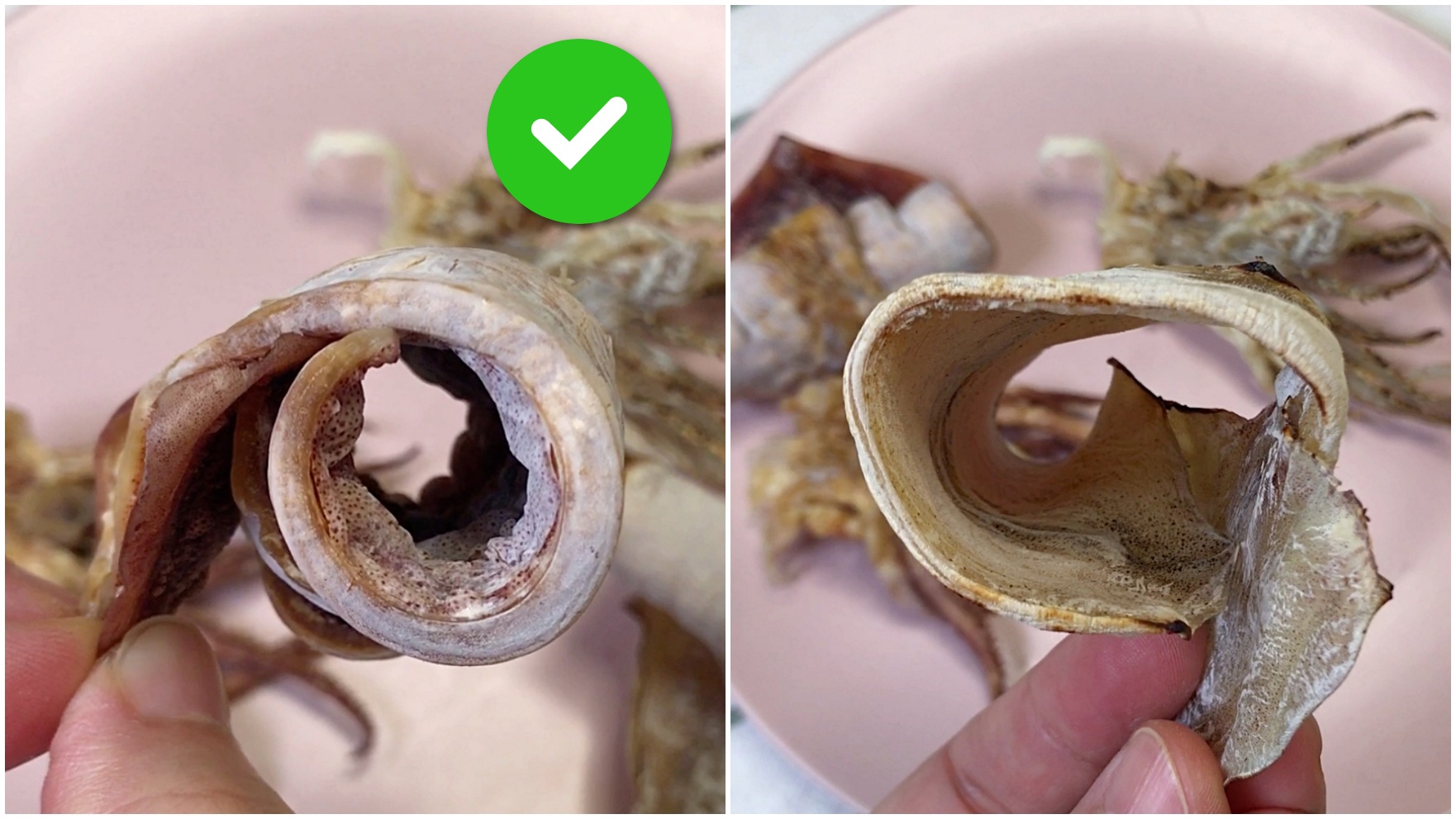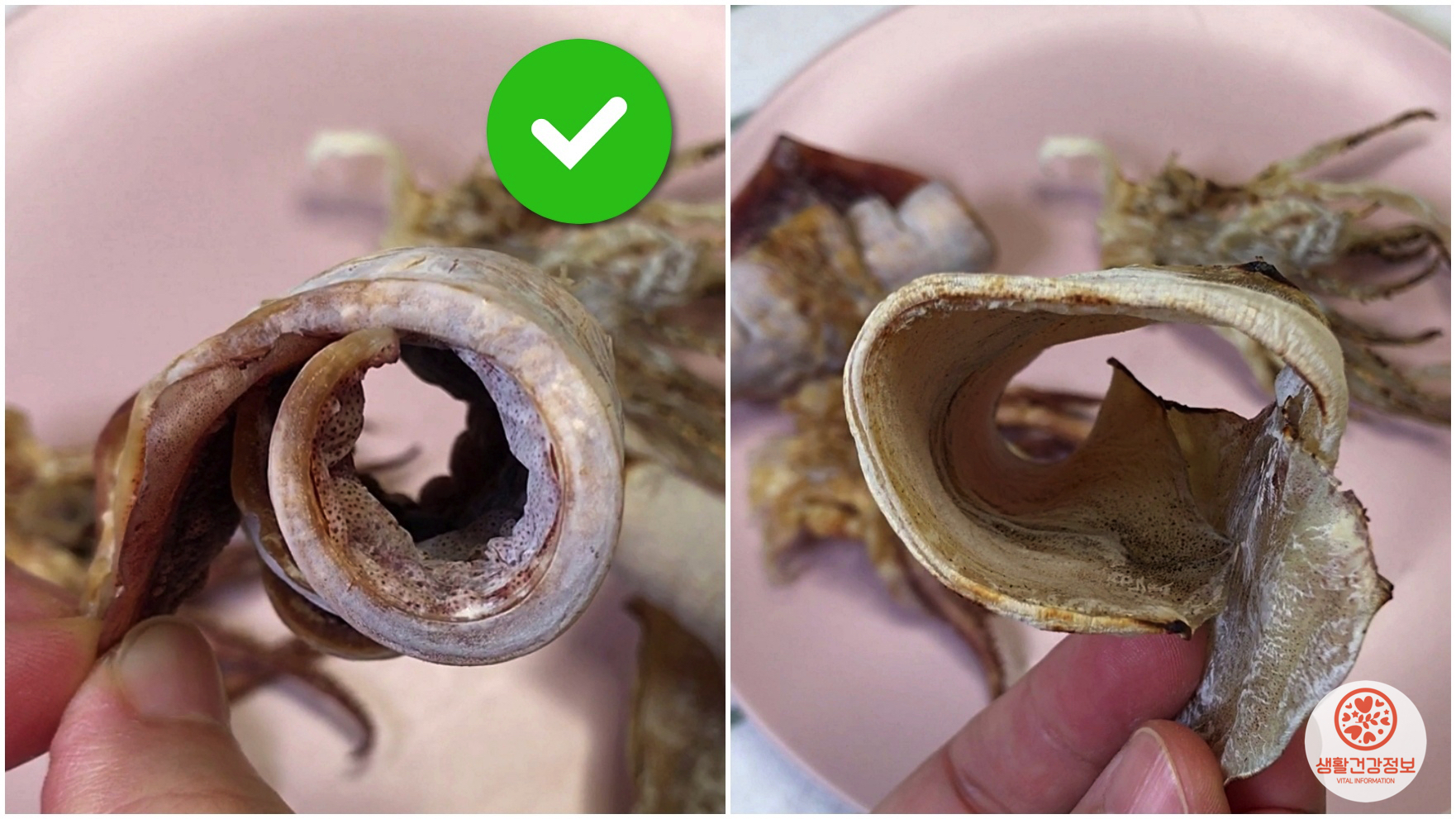 오른쪽은 마른 상태에서 불에 구운 오징어에요.