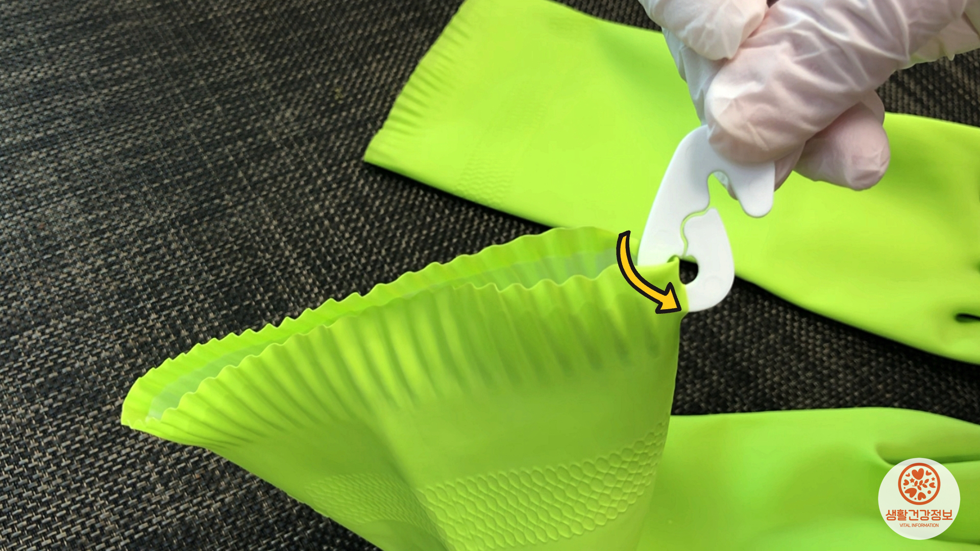 고무장갑에 딱 맞는 거치형 고리가 완성돼요.