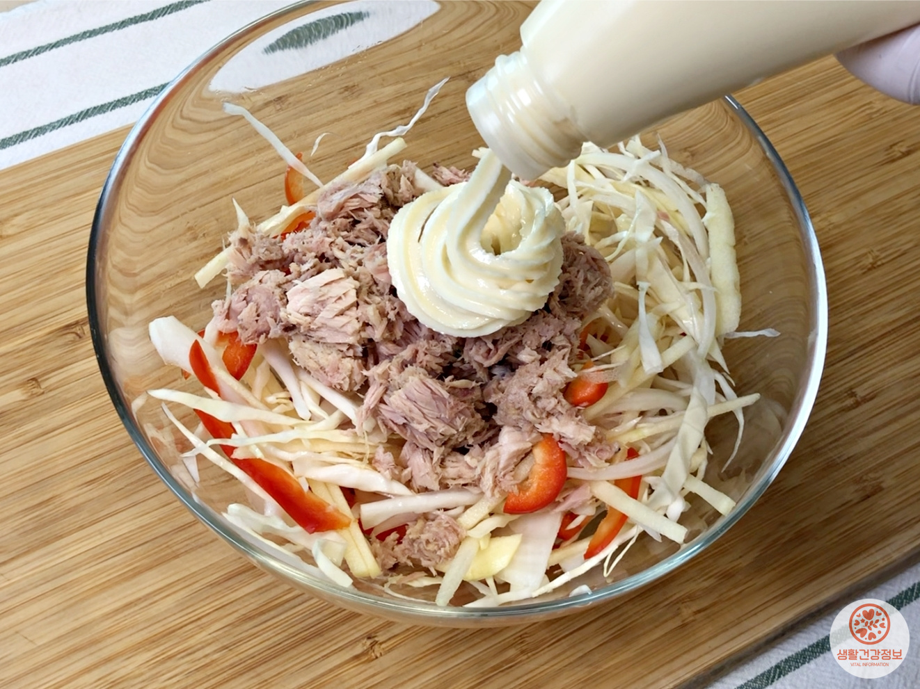 마요네즈 넣어서 버무리면 초간단 샐러드 완성.