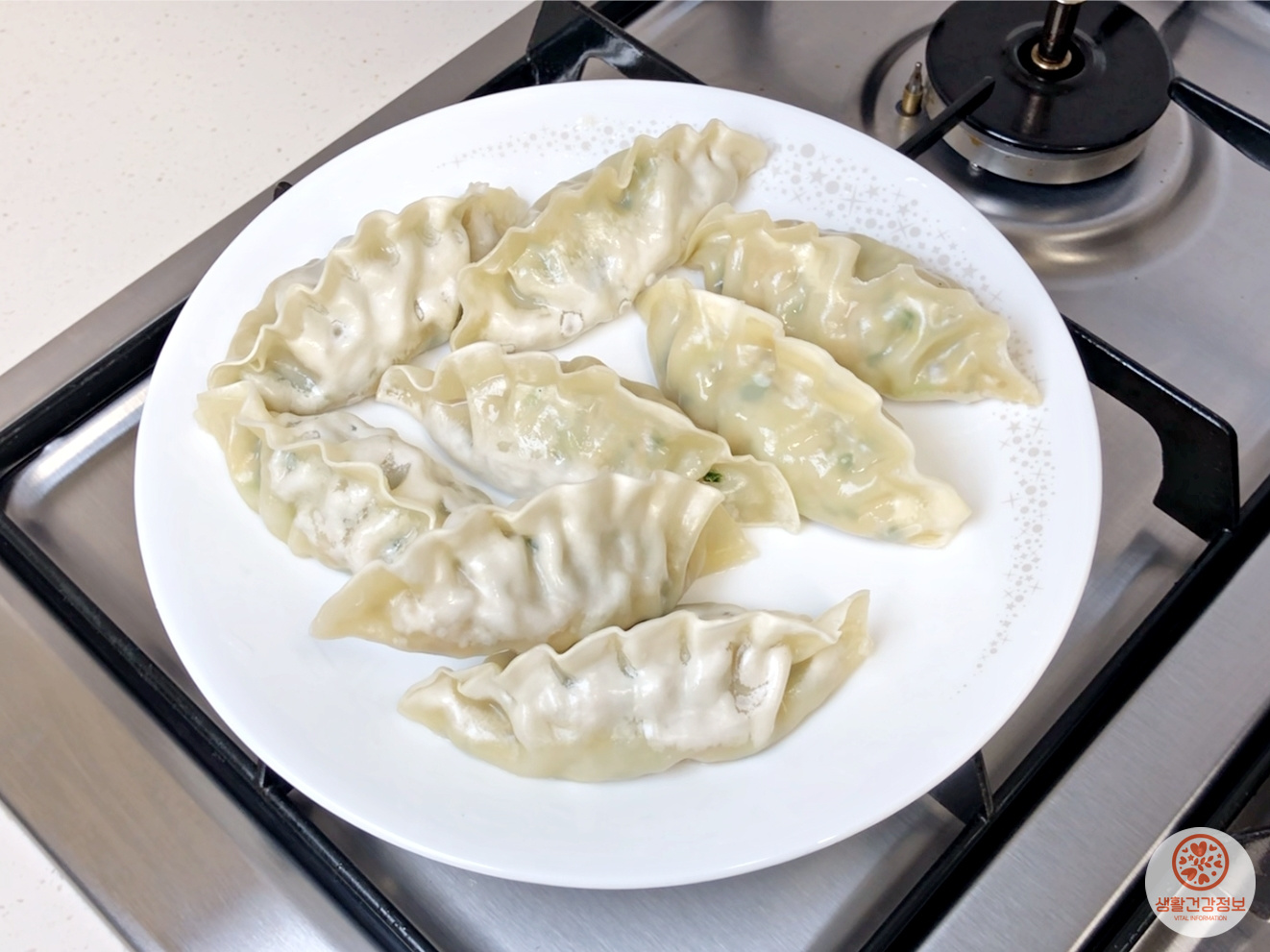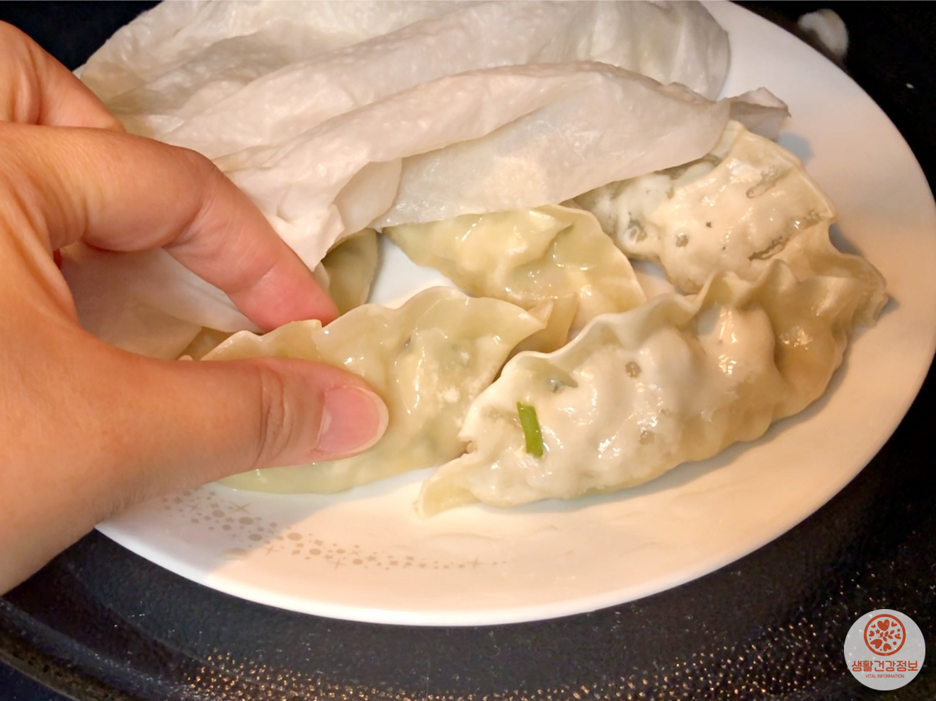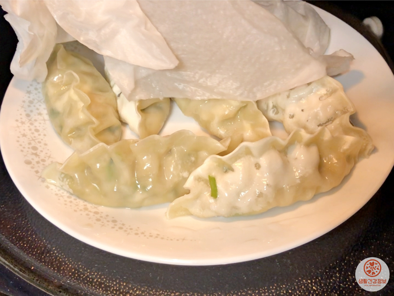 만두를 반쯤 익혀서 온도차를 줄이는거죠.