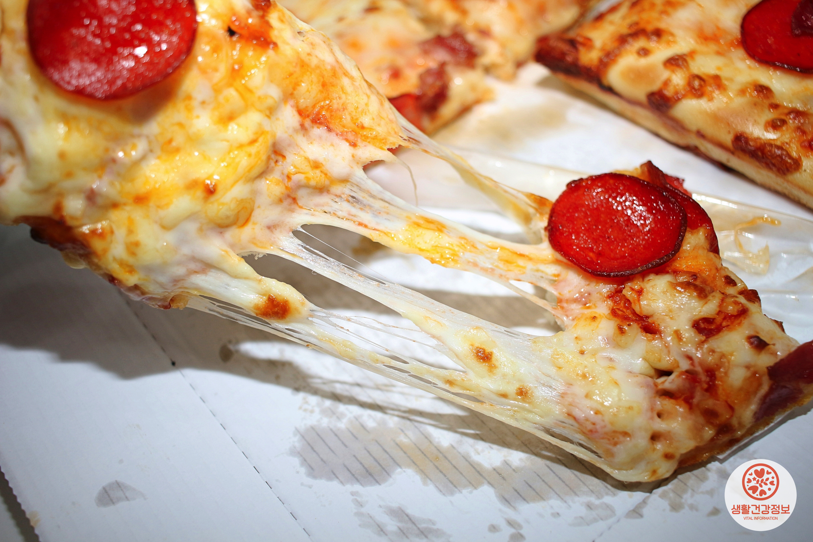 피자 한조각당 페퍼로니와 베이컨이