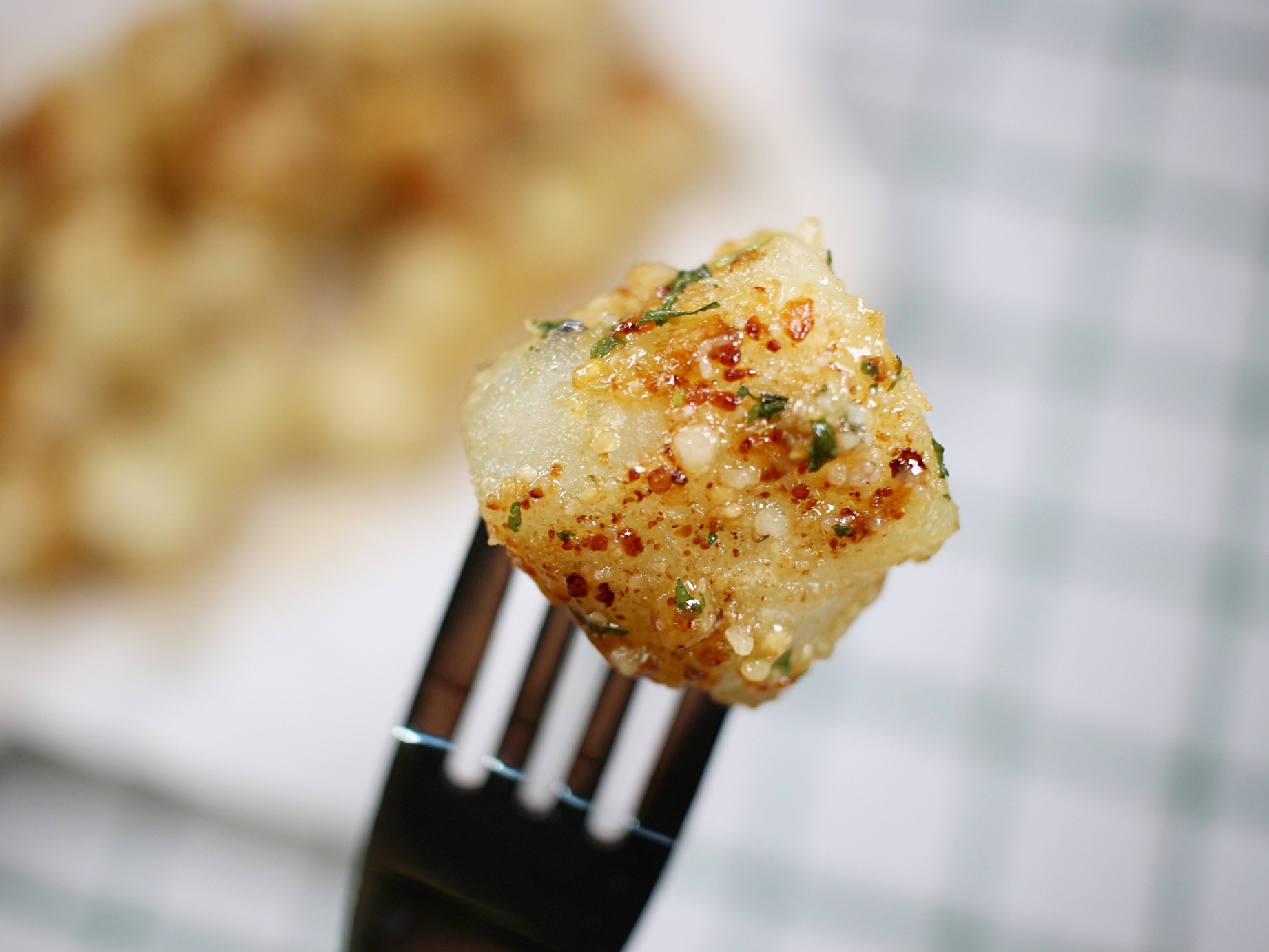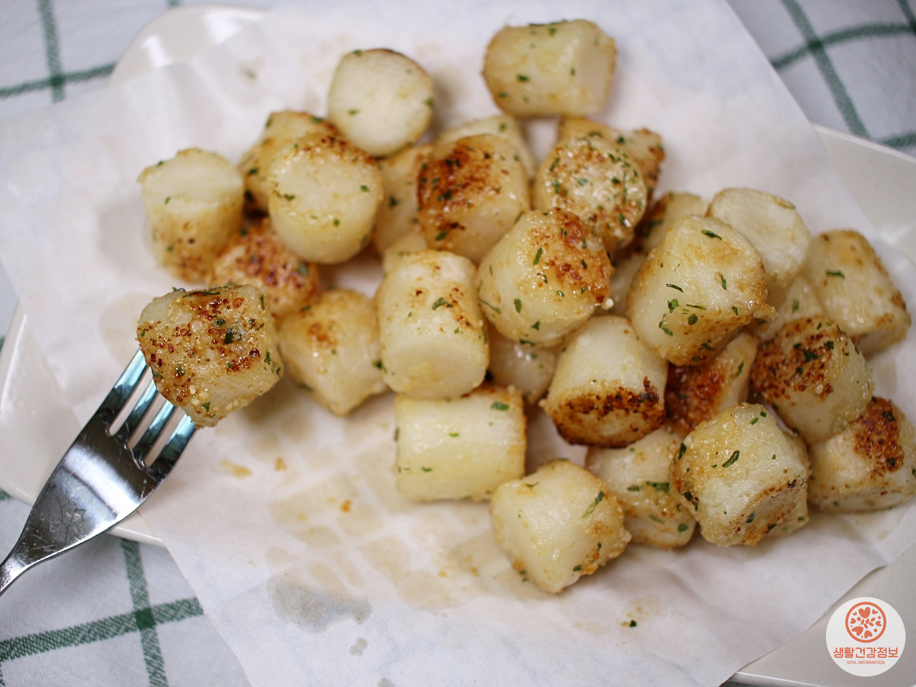 가래떡이 노릇노릇해지면 파마산치즈가루를 넣어주세요.