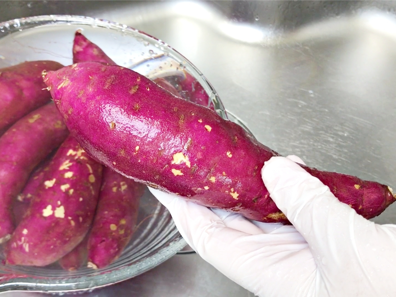 고구마를 깨끗하게 씻은 뒤 껍질을 벗겨주세요.