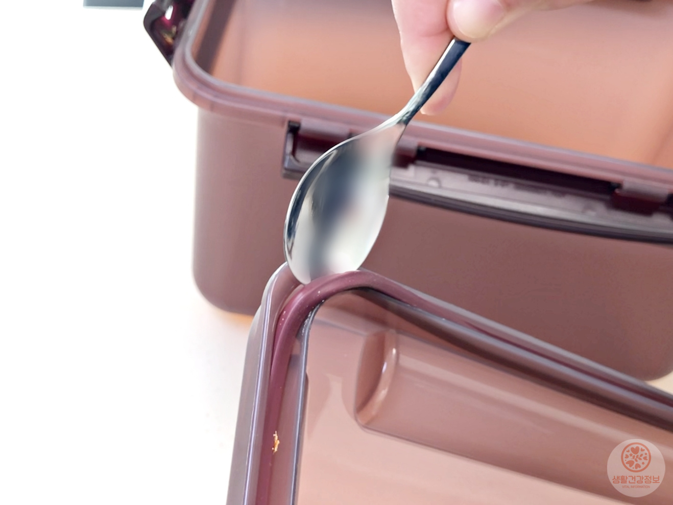 얇은 티스푼을 고무패킹이 모서리에 끼우고