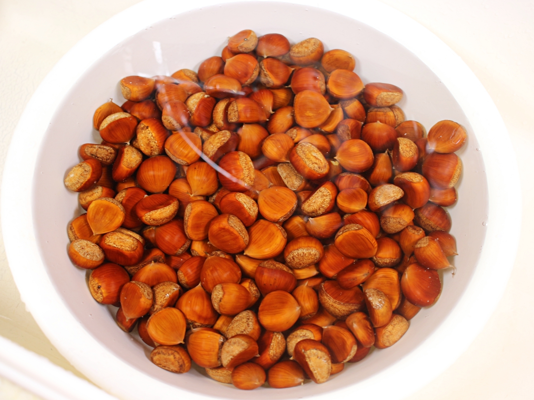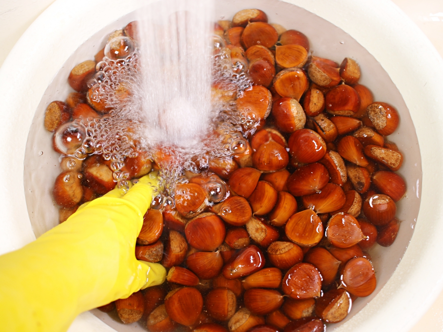 먼저 물에 담가 상한 밤을 골라내 볼게요.