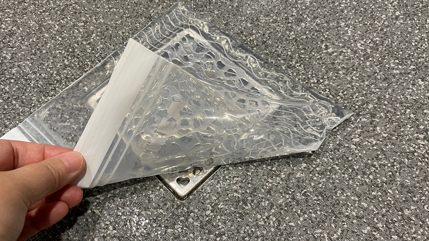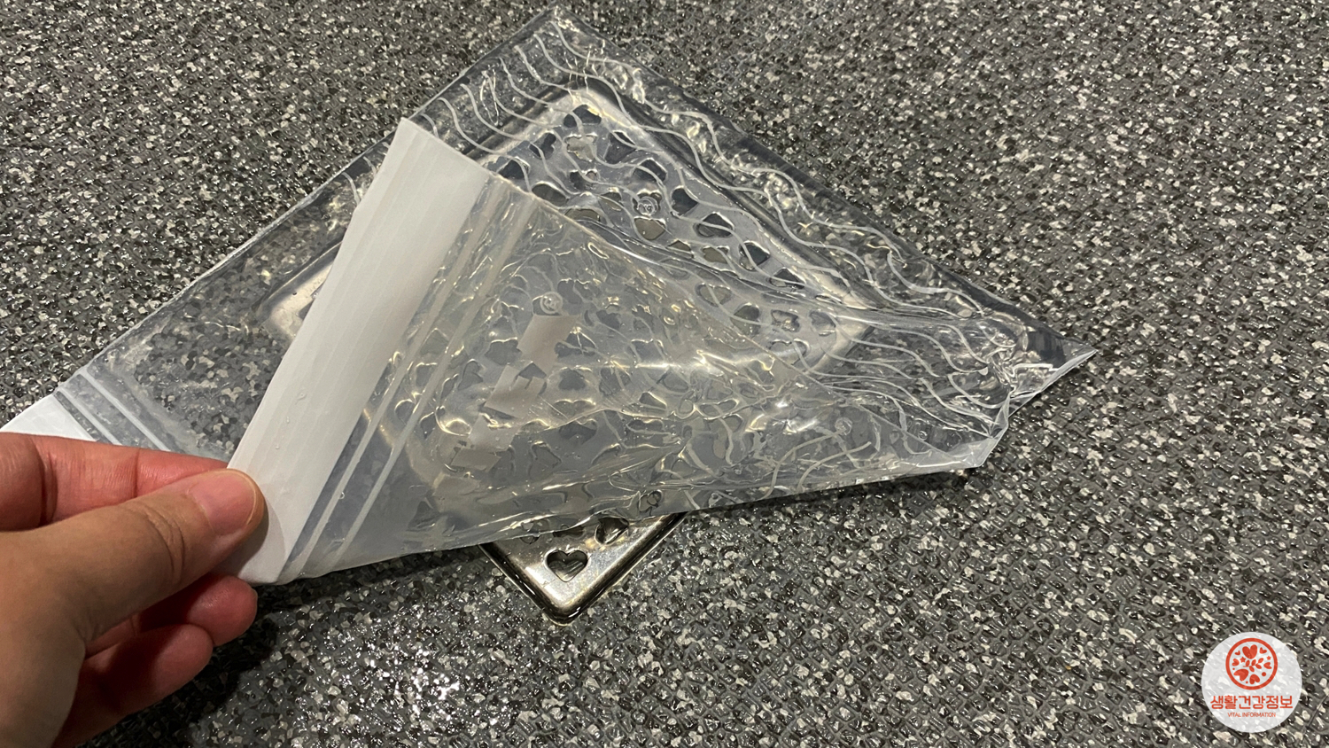 물을 채운 지퍼백을 배수구에 척 올리기만 하면