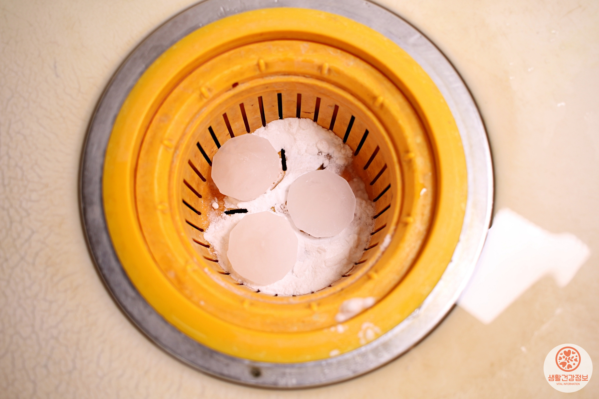 배수구 악취 잡는 구연산 얼음이 완성돼요.