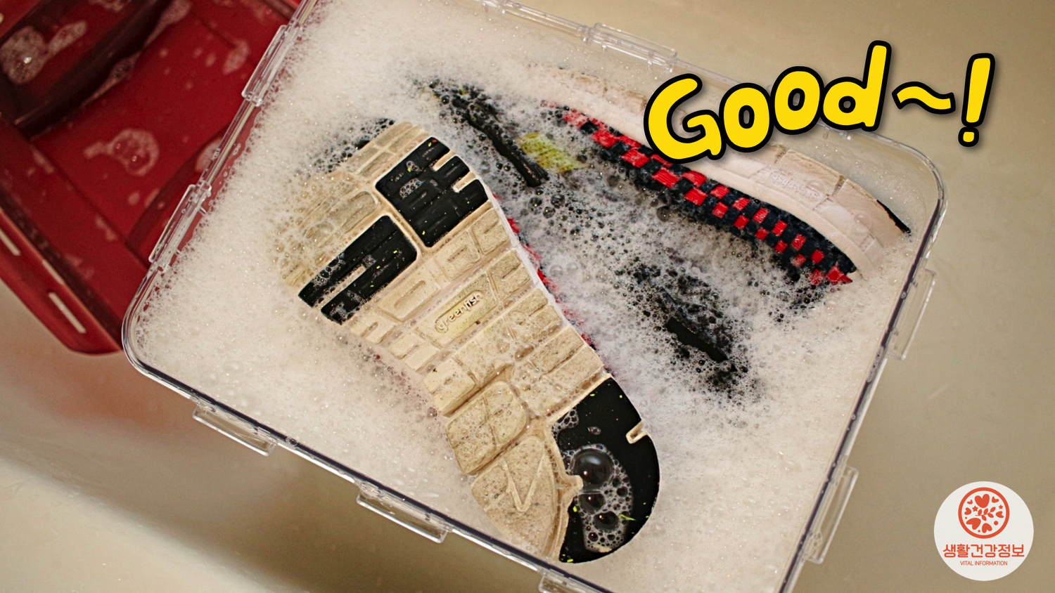헹군 물이 깨끗해지면 운동화 빨래 끝!