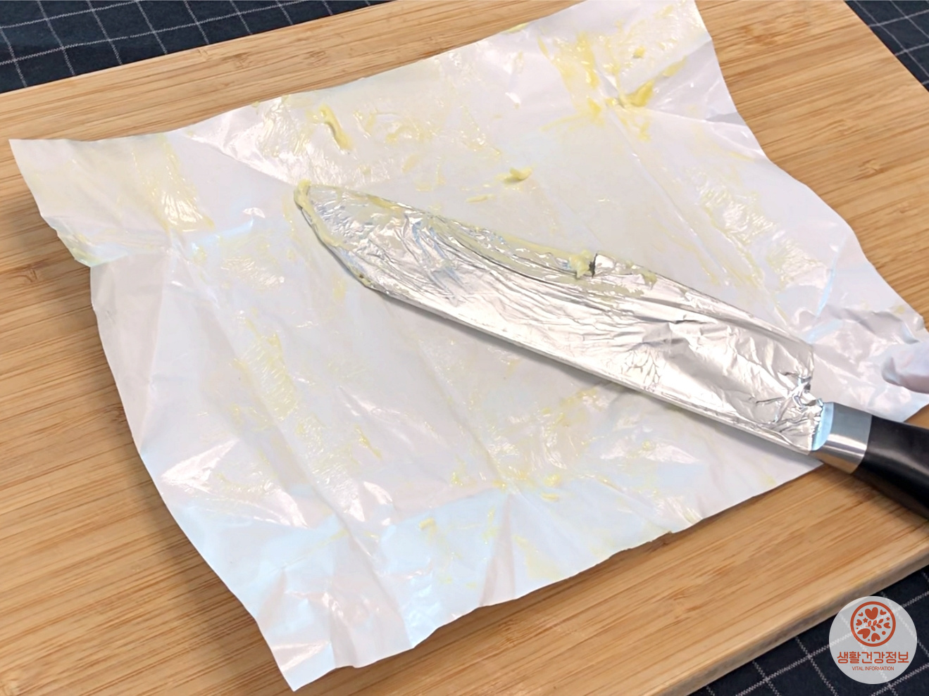 쿠킹호일 속 칼에는 기름이 하나도 묻지 않았고요.