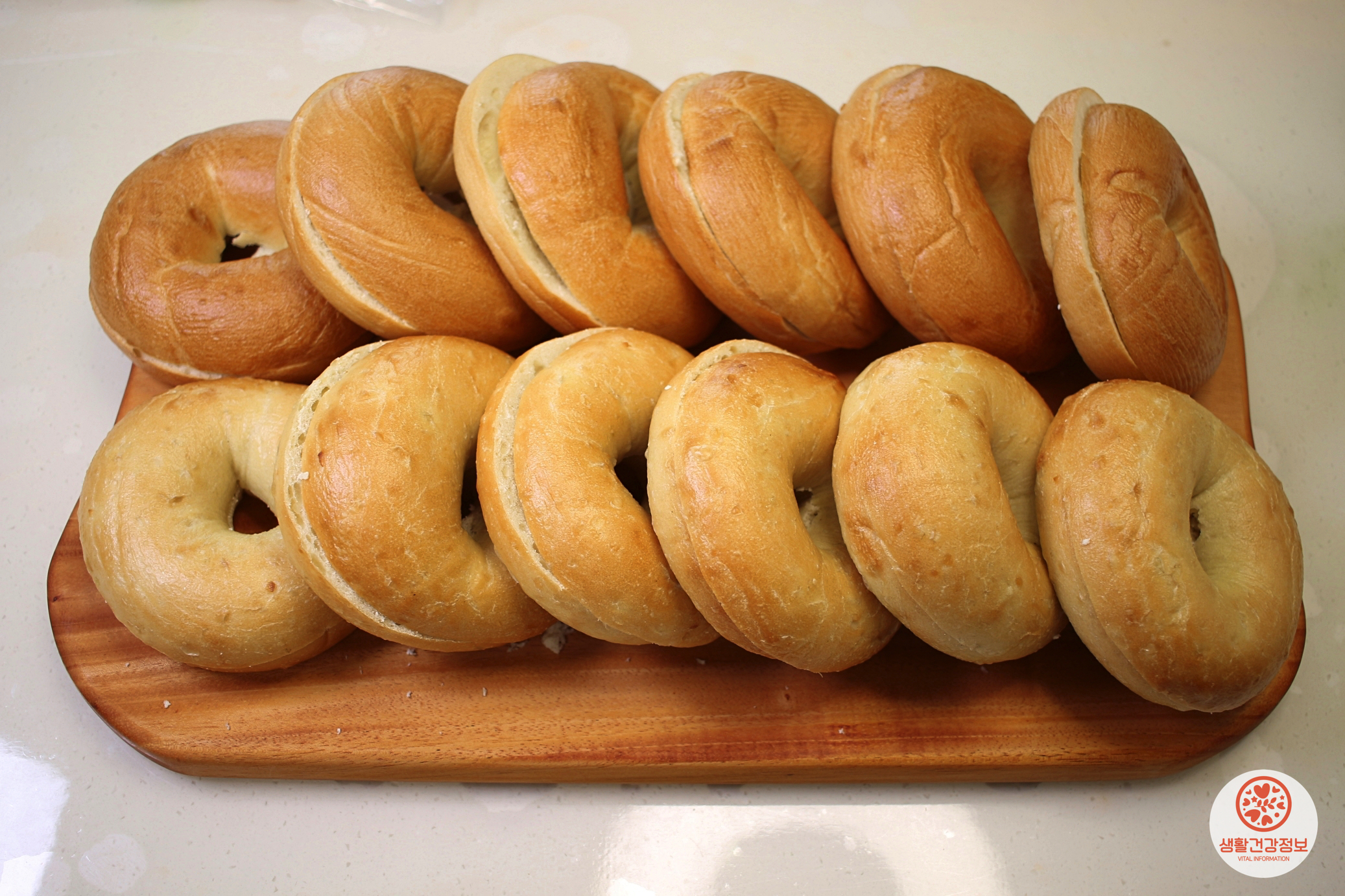 반으로 썰어서 잼이나 치즈 등을 발라먹고