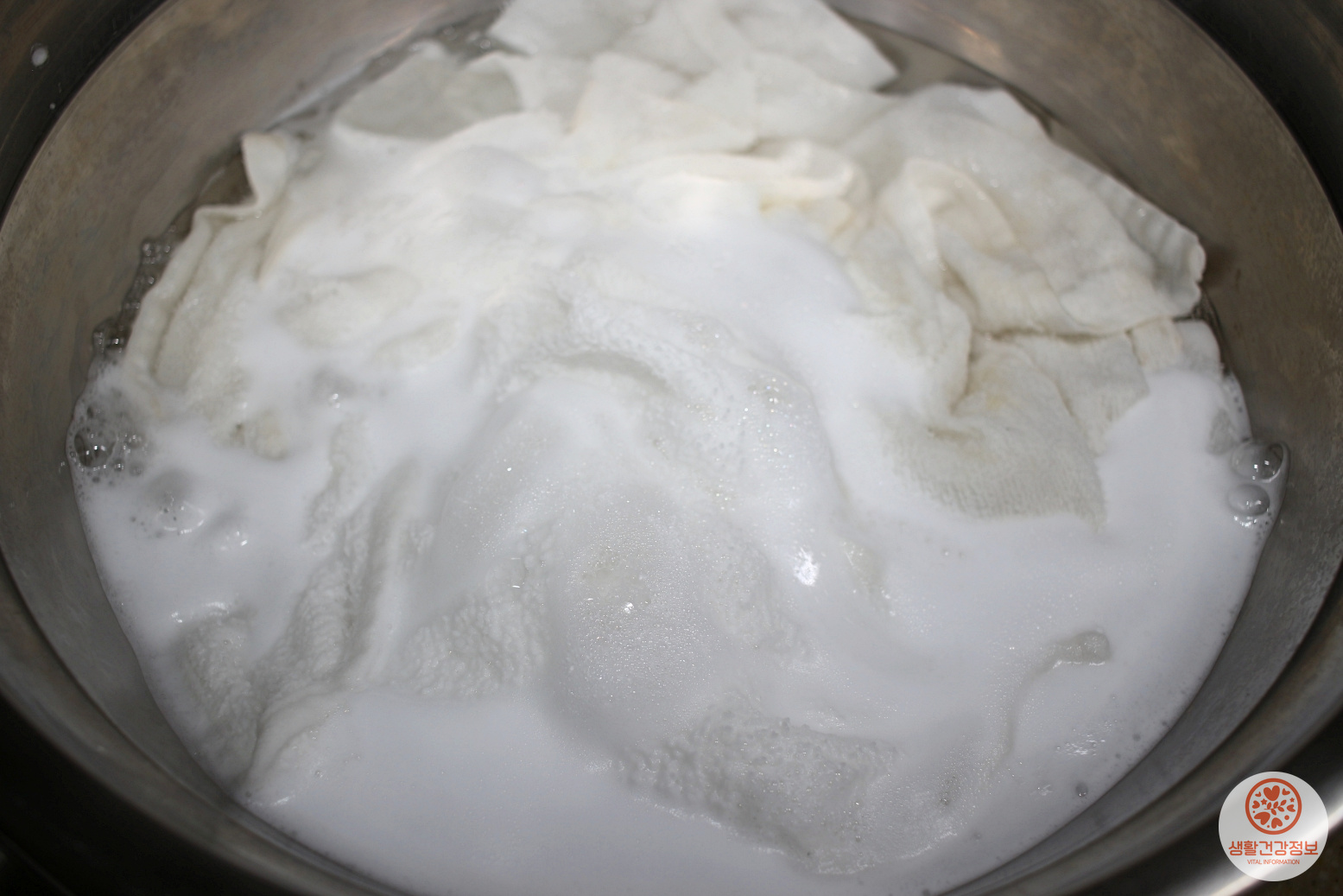 끓는물에 삶거나, 과탄산소다 많이 쓰는데요.