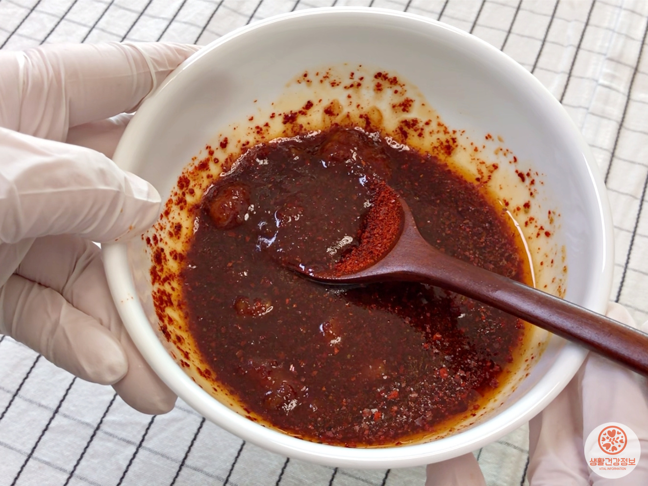 멸치액젓, 들기름, 다진마늘, 고춧가루 준비해주세요.