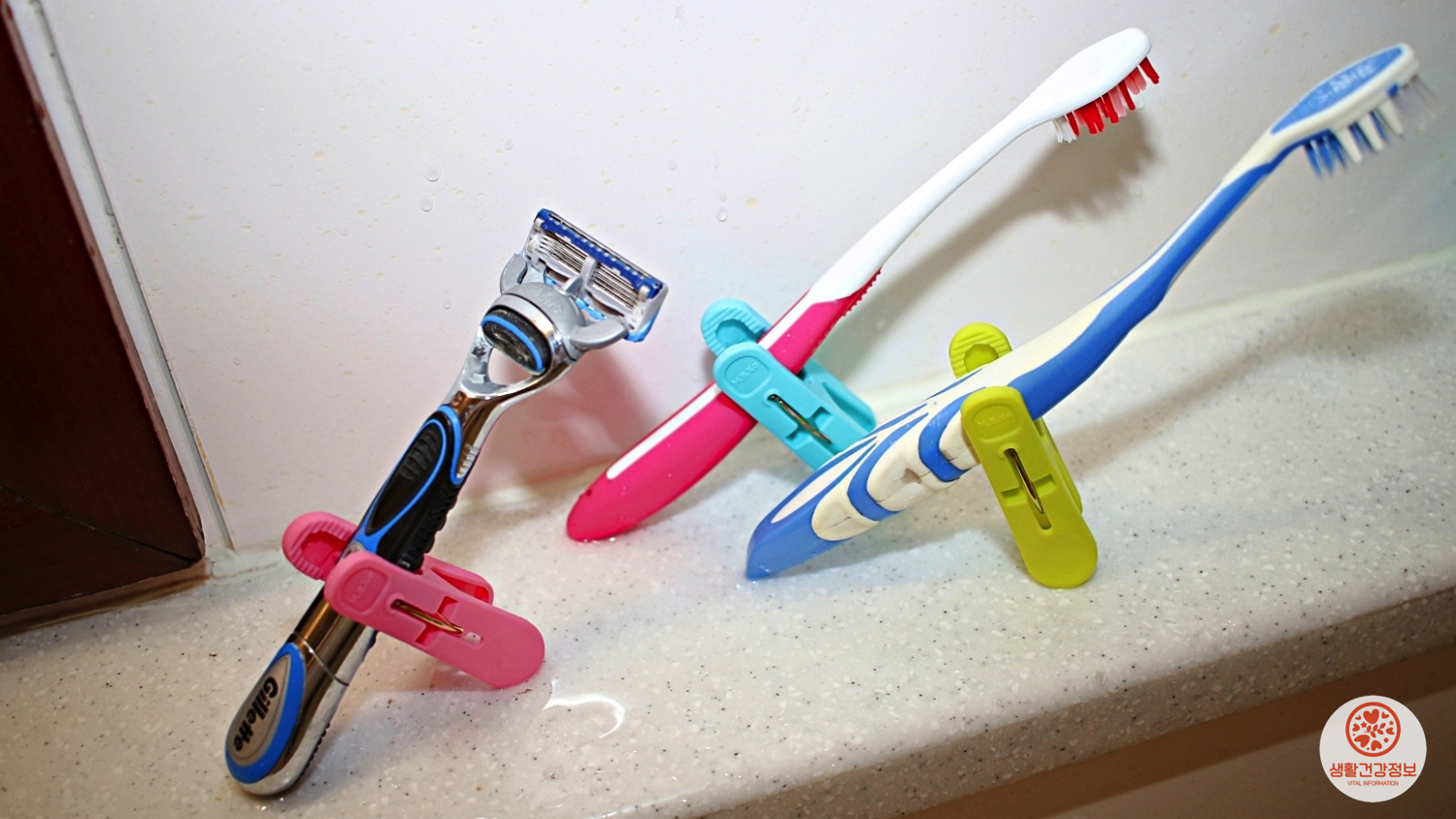 칫솔이나 면도기에 빨래집게를 집어놓으면