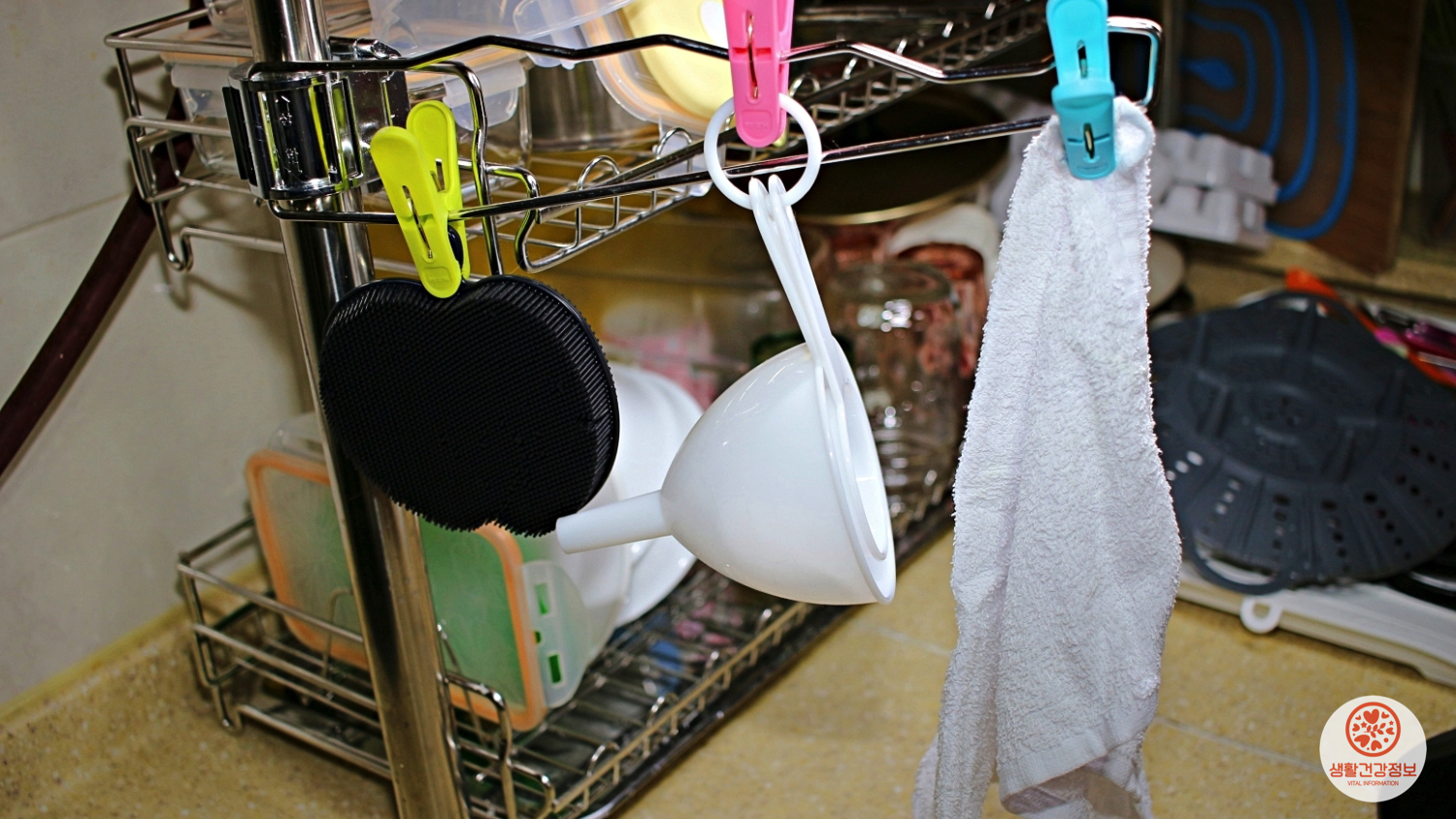 빨래집게로 집어서 식기건조대에 걸어놓으면