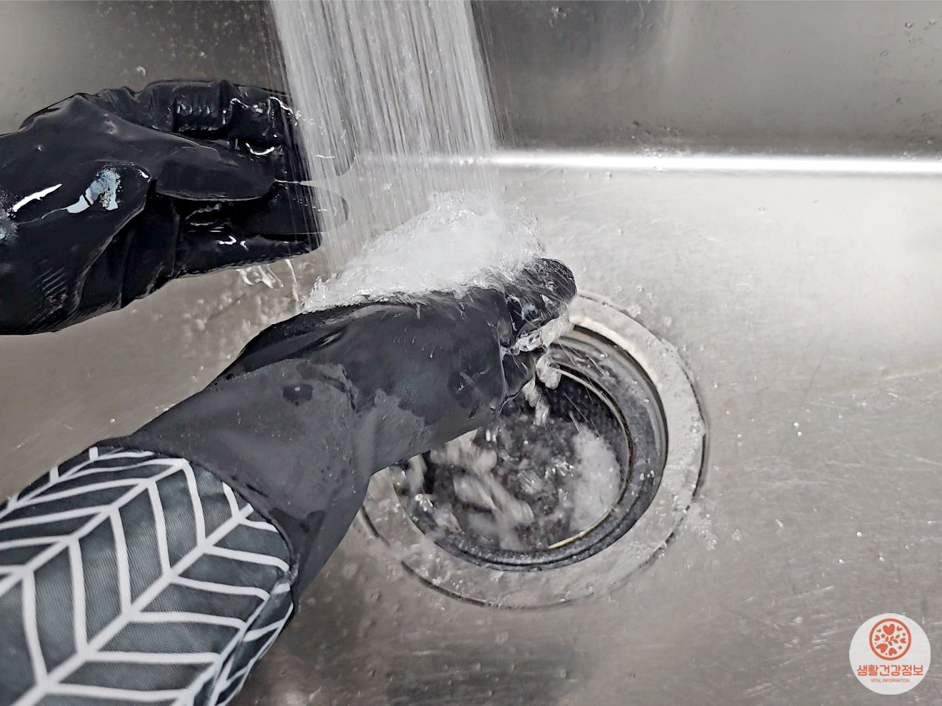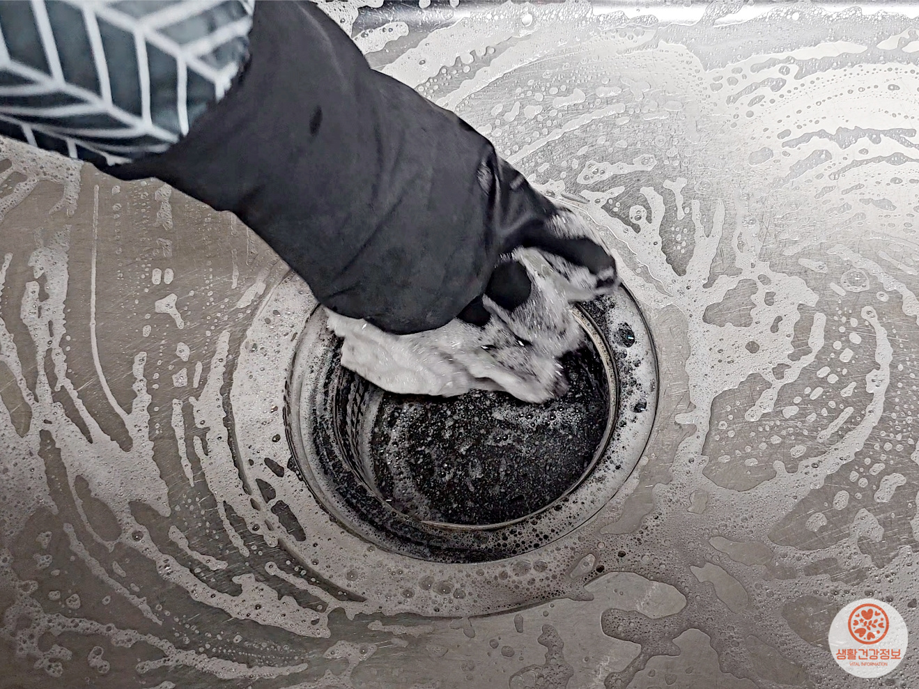 싱크볼 안쪽과 배수구를 구분해서 닦으니까