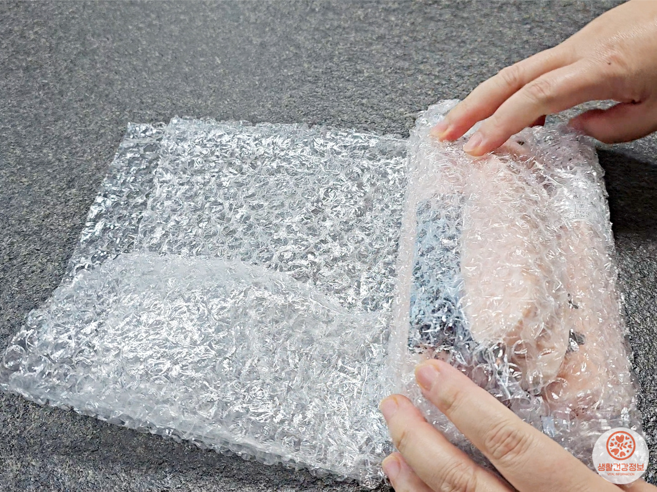 지퍼백 대신 뽁뽁이를 쓰면 성에 예방 효과가 있어요.