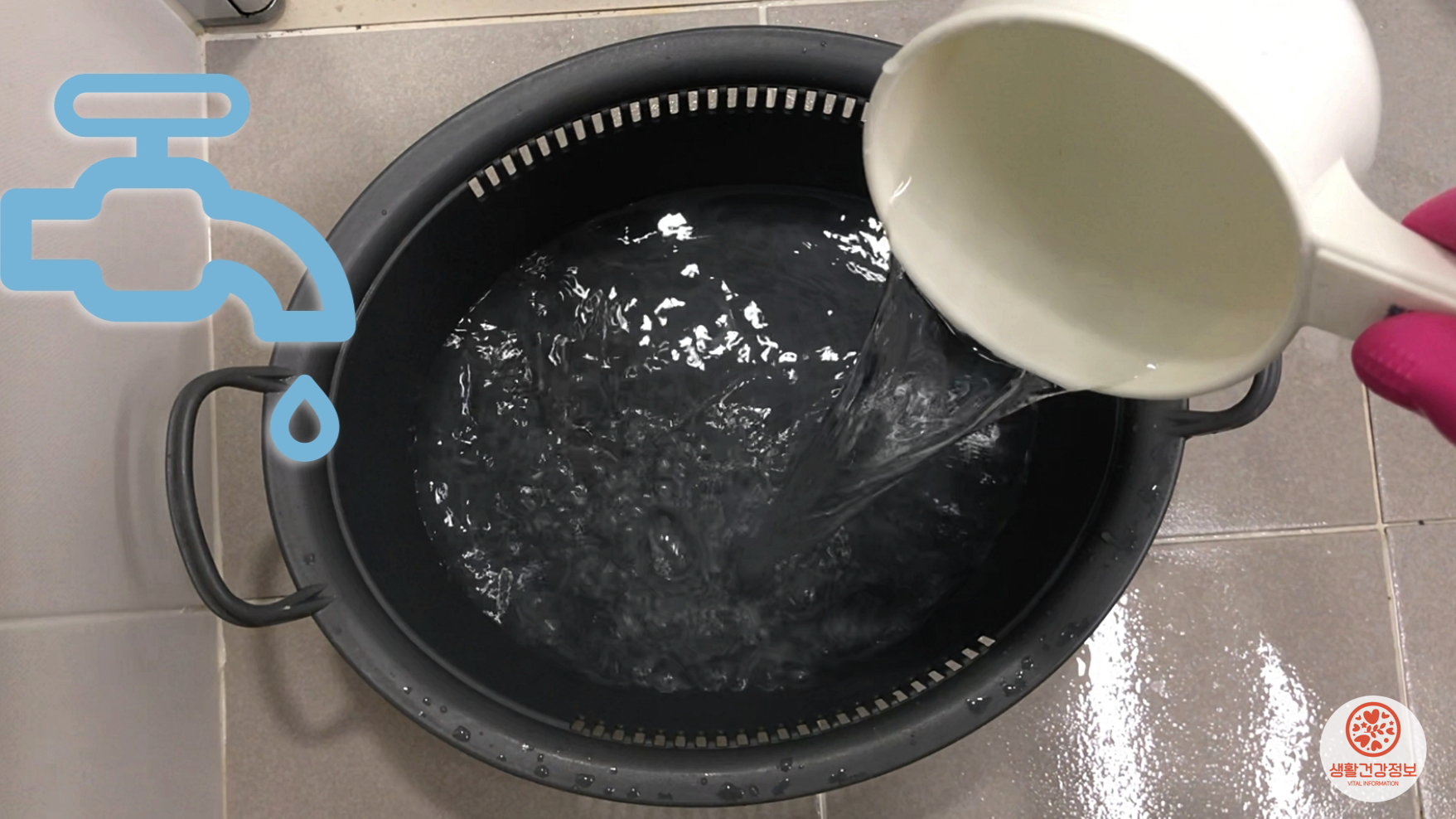 이 상태로 한시간 이상 충분히 때를 불려요.