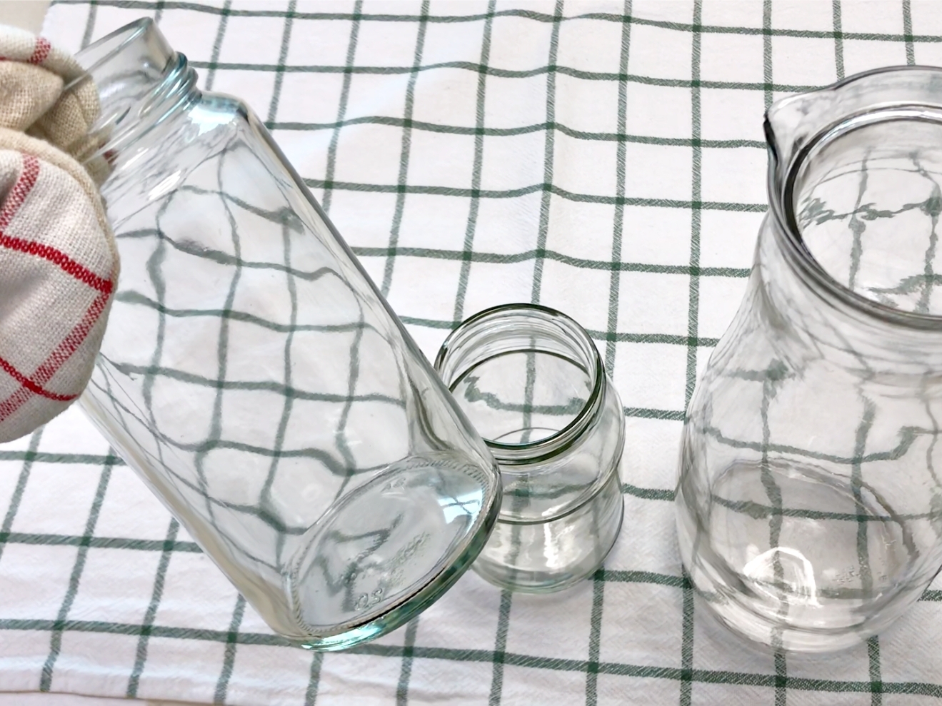 혹시 유리병이 쓰러져도 행주가 충격을 흡수해서
