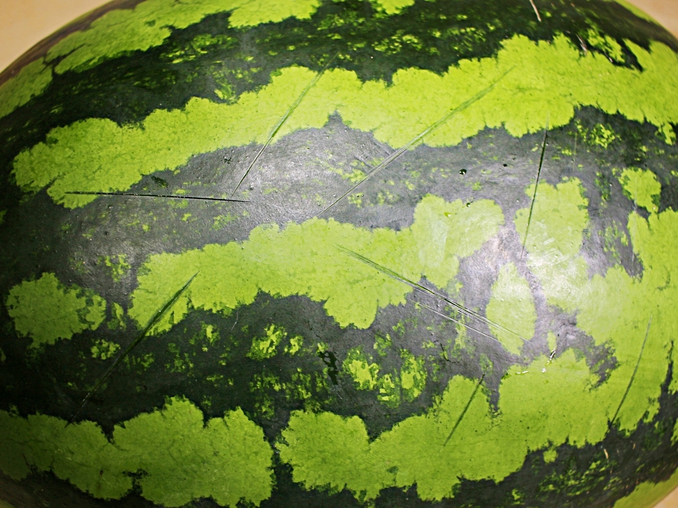수박 반통을 뒤집으면 검정색 줄이 더 잘 보일거예요.